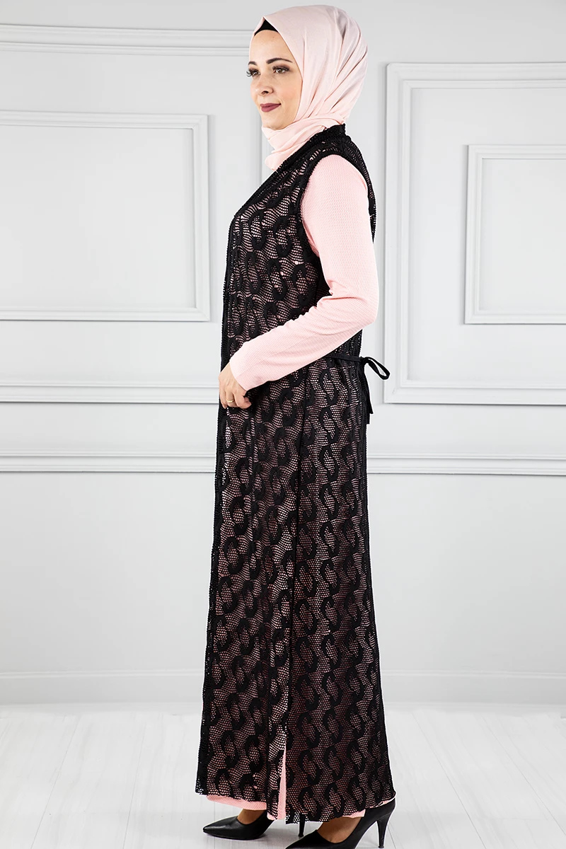 Yelekli Tesettür Elbise Br20128 Pembe L-XL