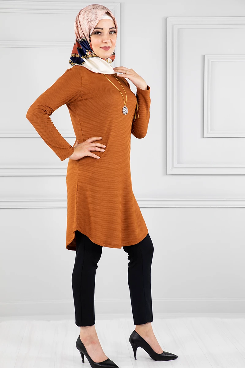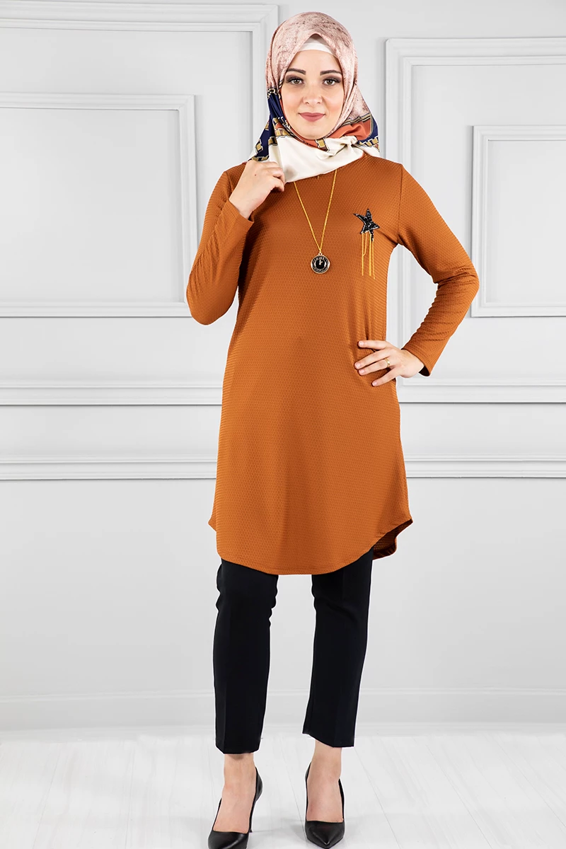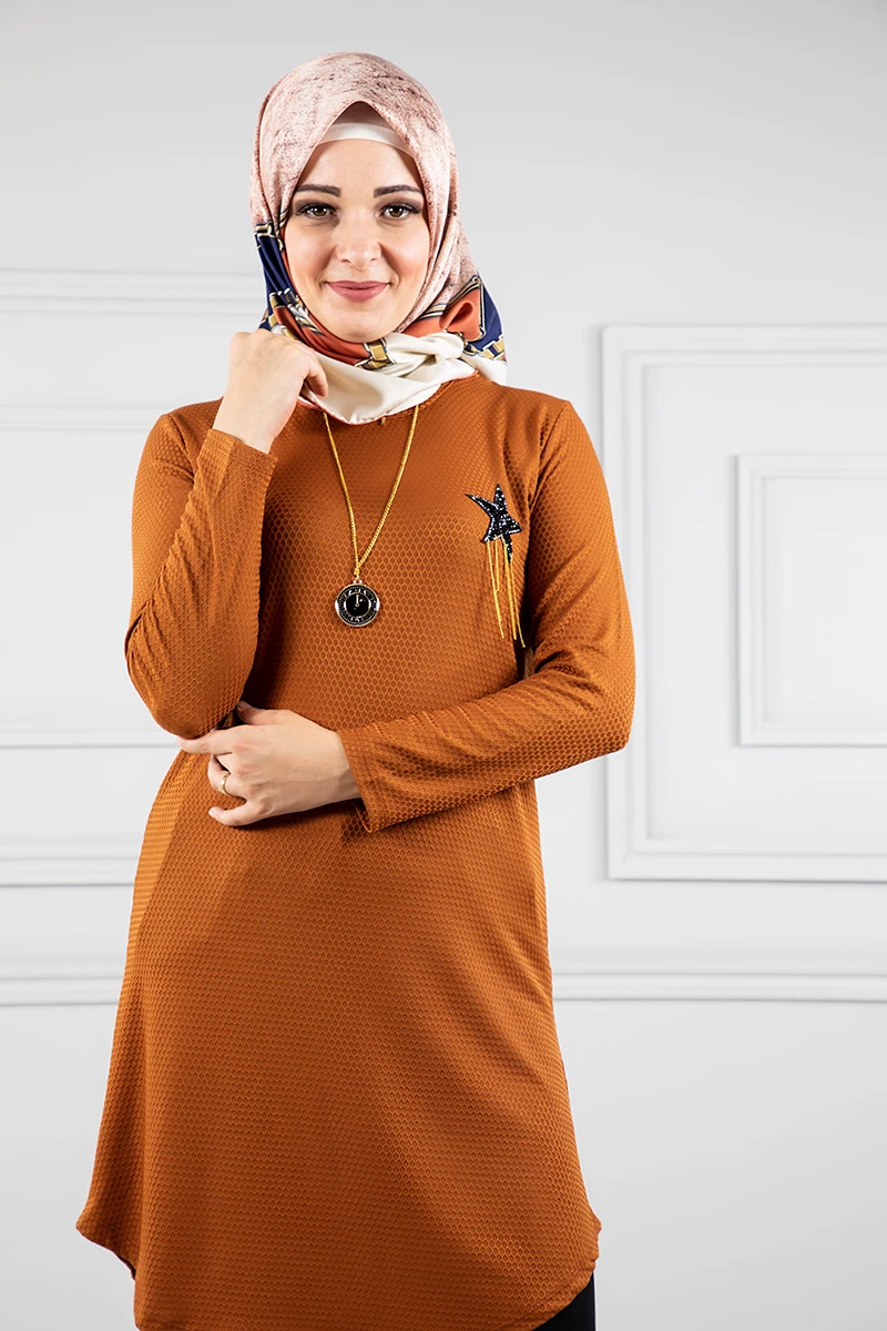 Needion - Yıldız Desenli Tesettür Tunik Kiremit S-M