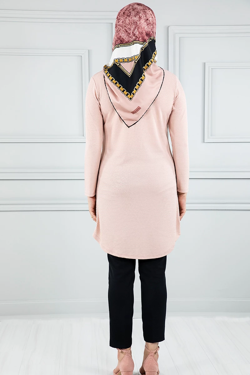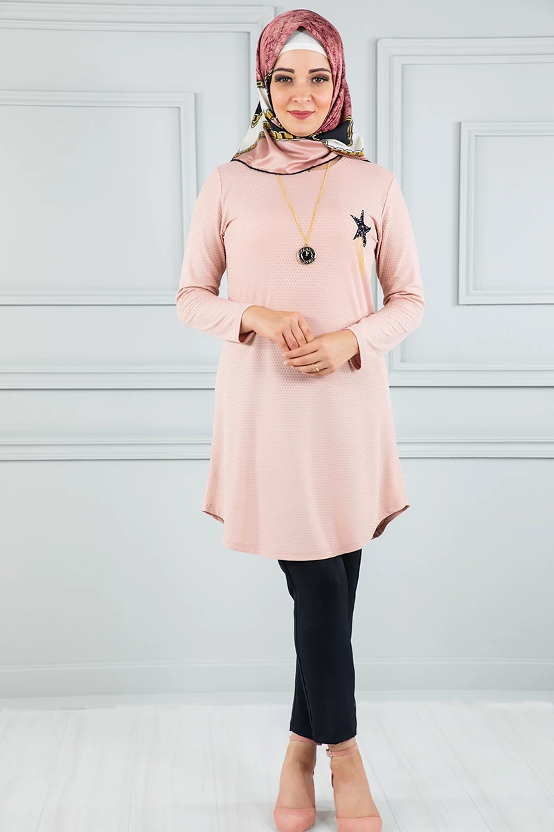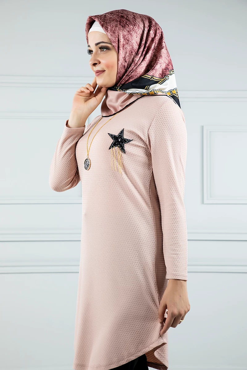 Needion - Yıldız Desenli Tesettür Tunik Pudra S-M