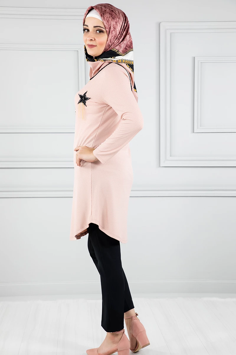 Yıldız Desenli Tesettür Tunik Pudra S-M