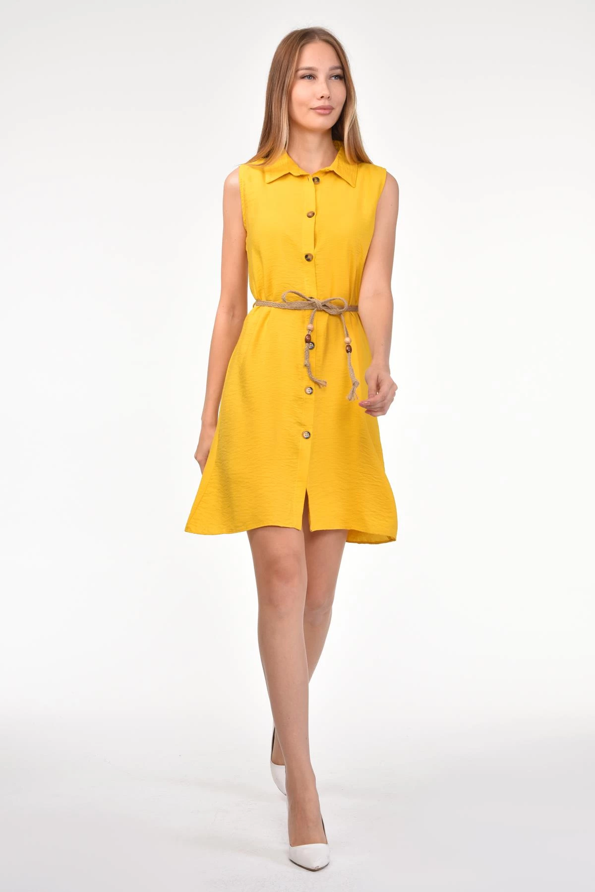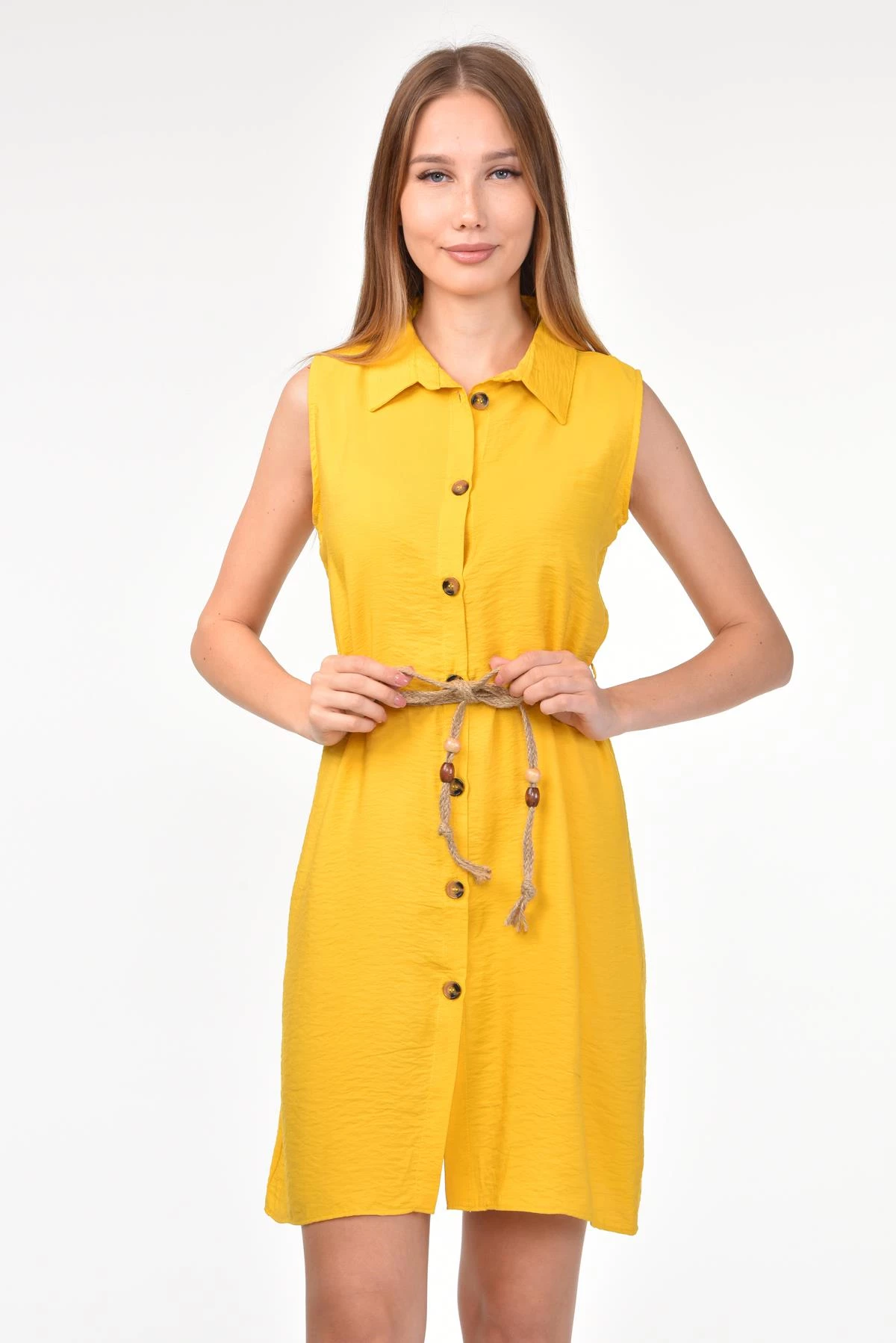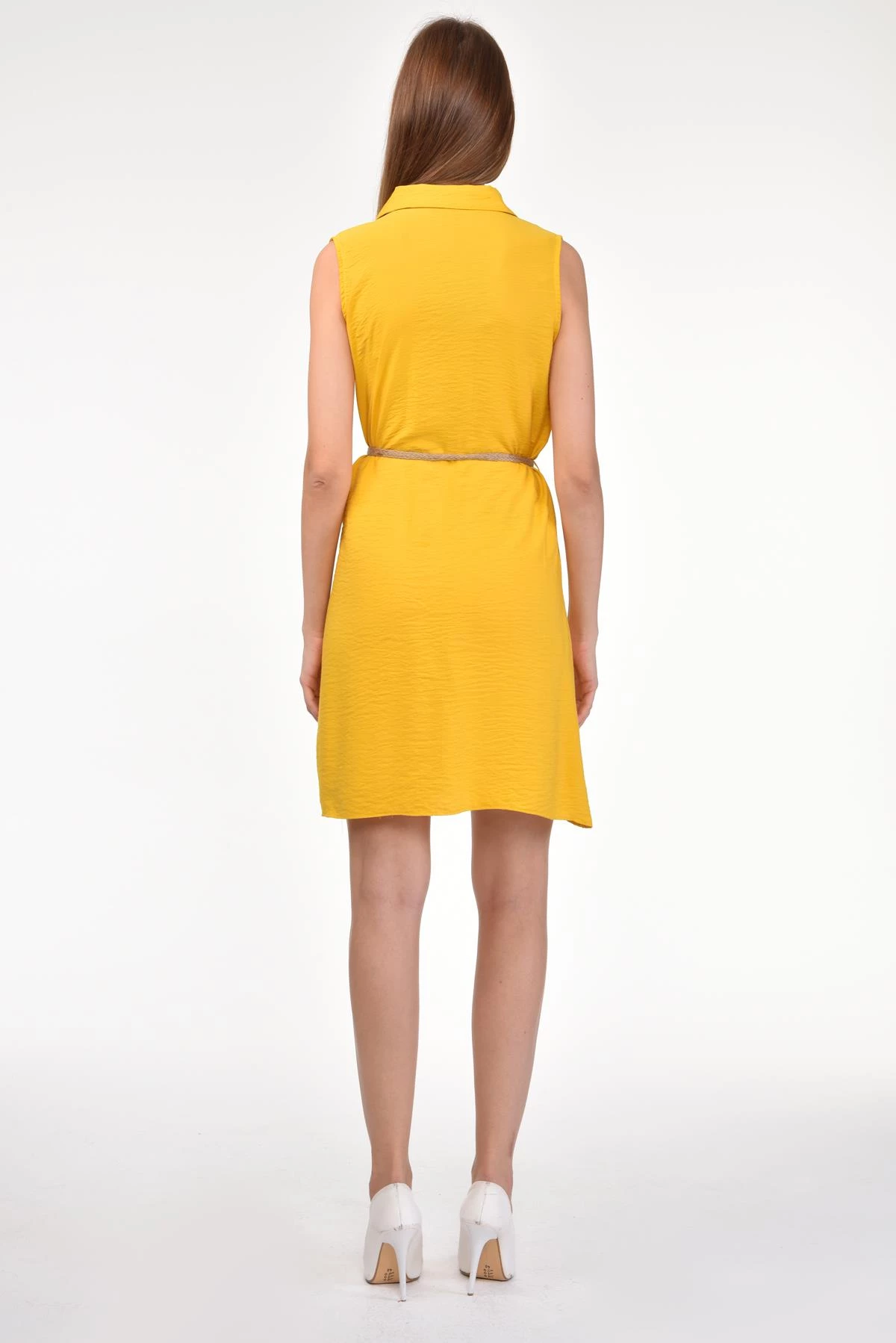 DRR Moda Gömlek Yaka Bol Kesim Tunik/Elbise Sarı S