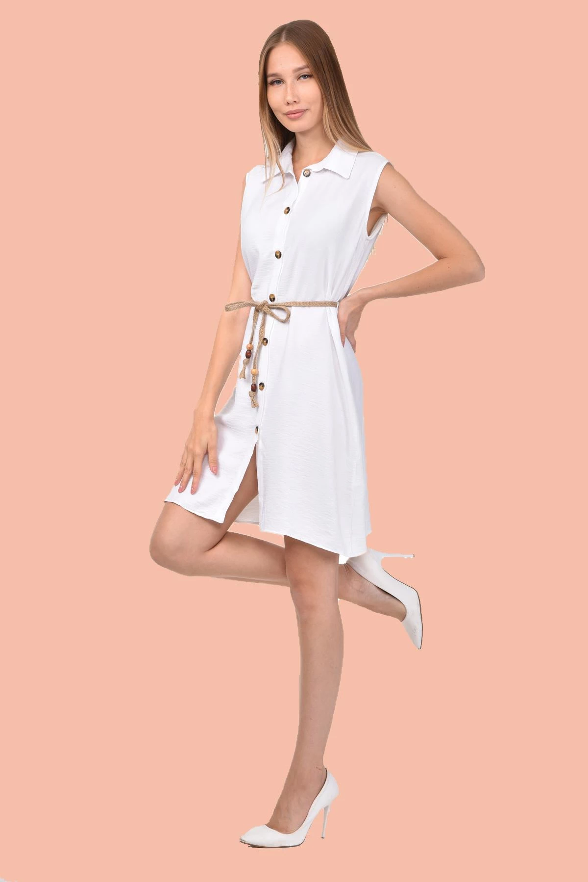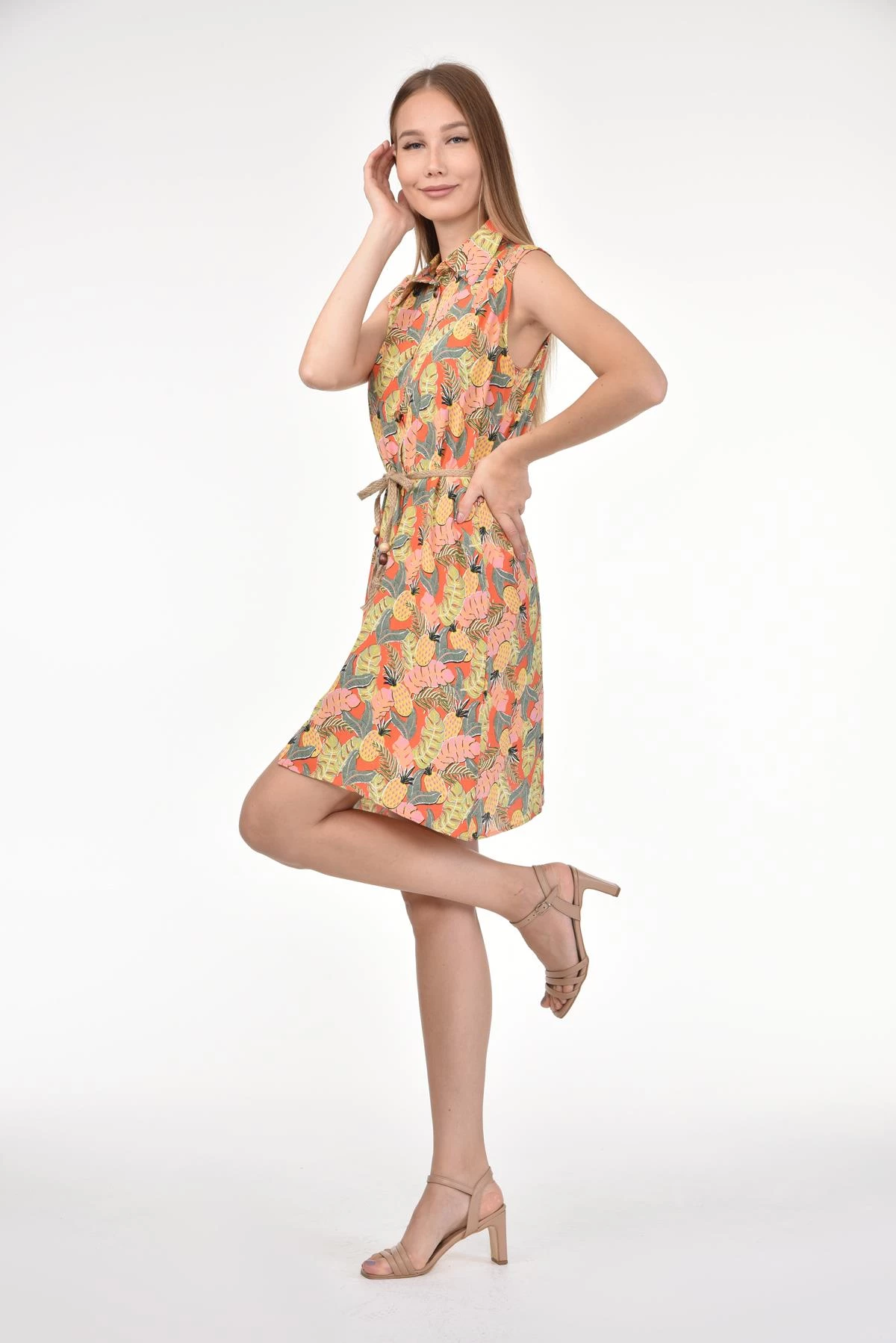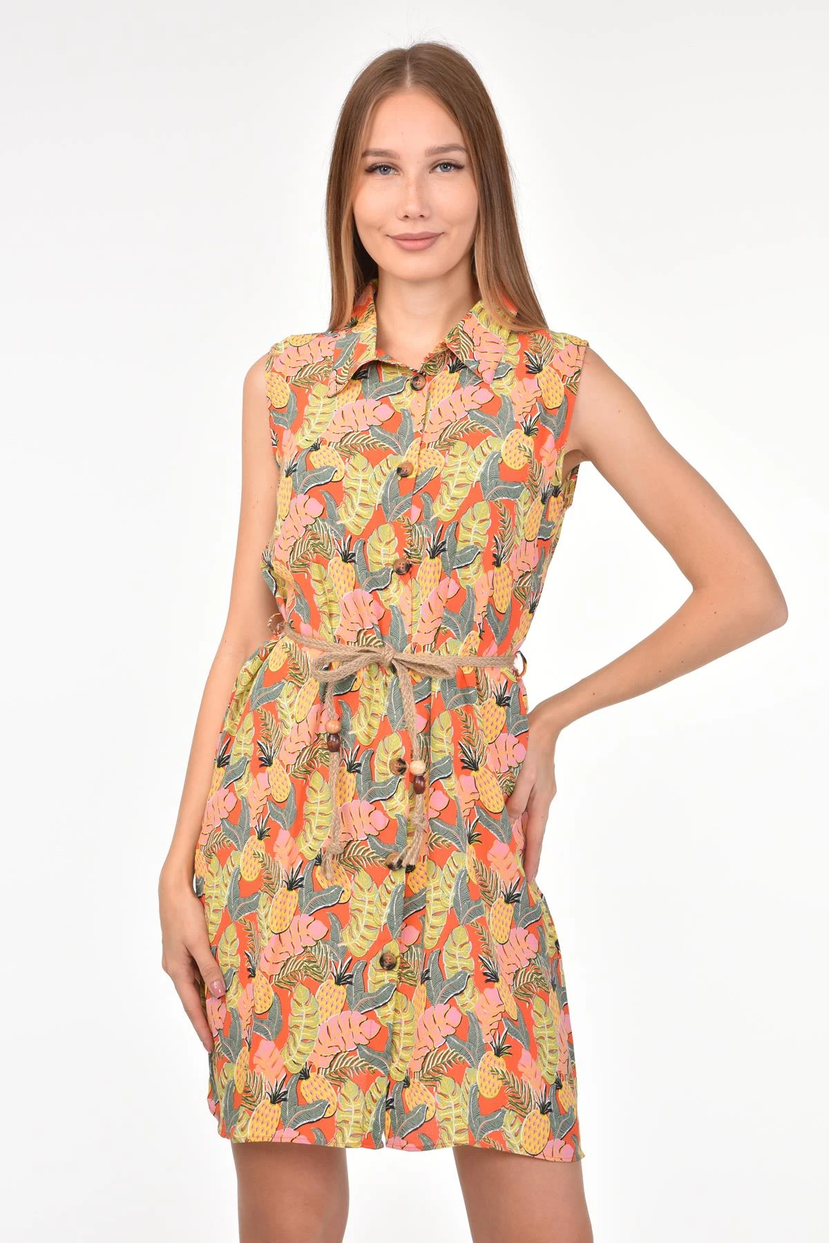 DRR Moda Gömlek Yaka Bol Kesim Tunik/Elbise Sarı S