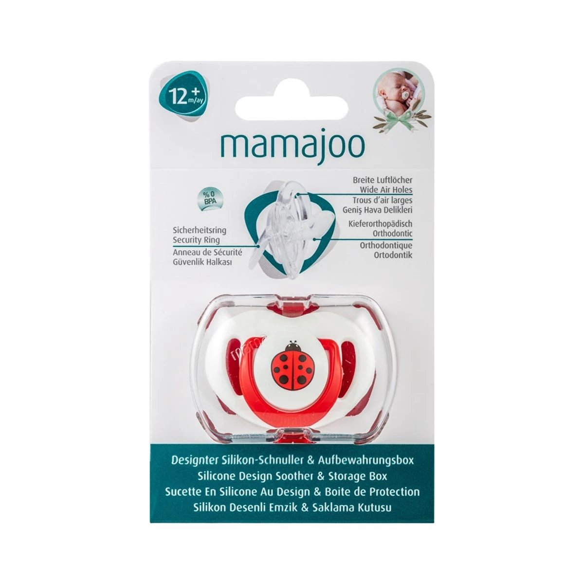 Mamajoo Tekli Desenli Emzik & Renkli Saklama Kutusu 12 ay+/ Uğur Böceği