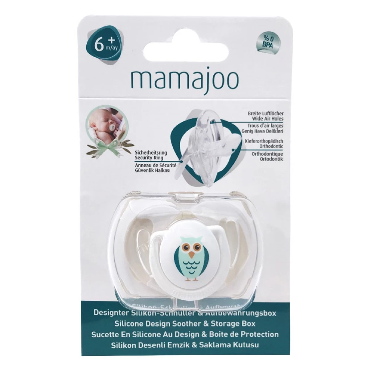 Mamajoo Tekli Desenli Emzik & Renkli Saklama Kutusu 6 ay+/Beyaz Baykuş