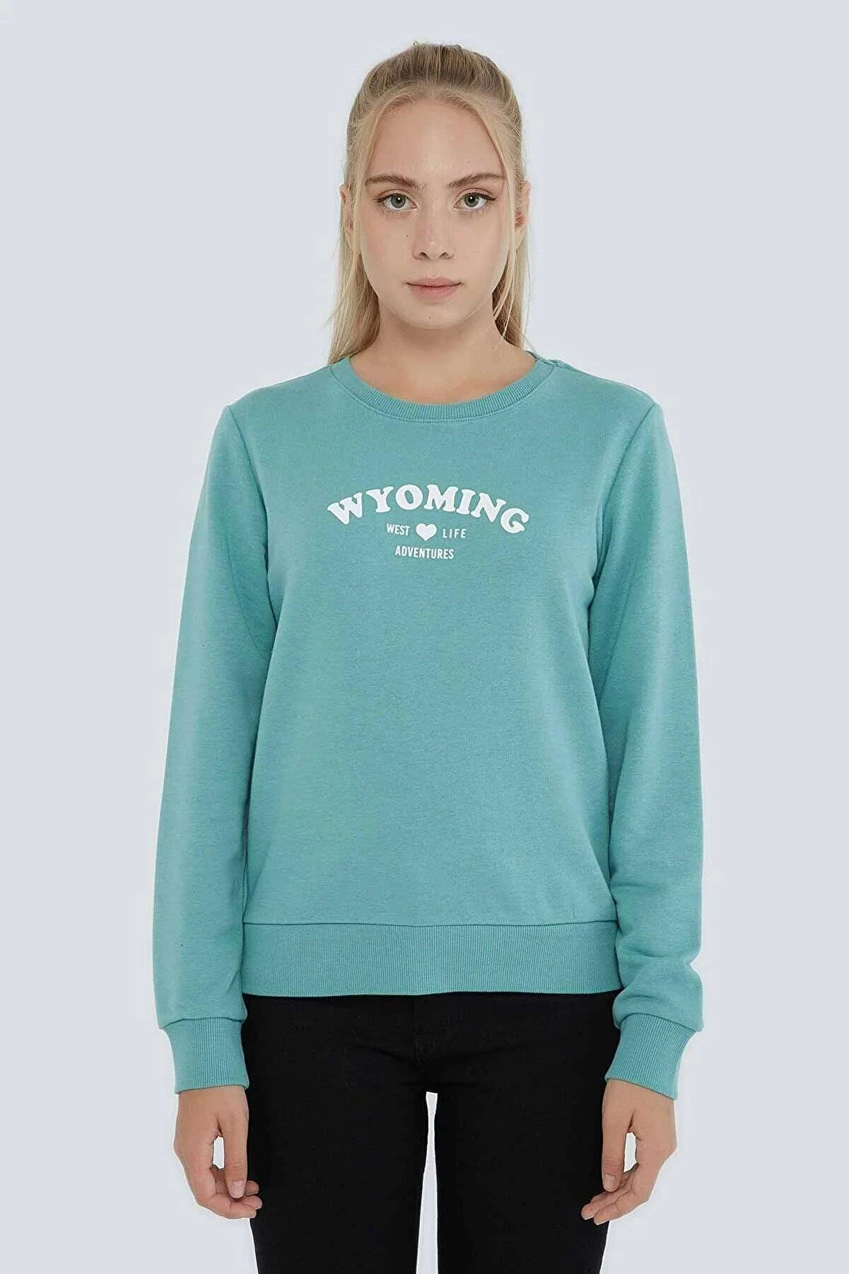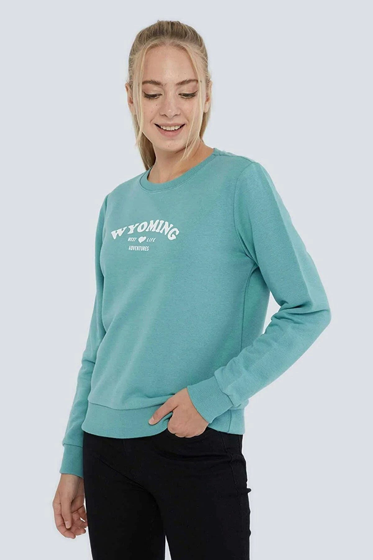 Needion - Fashion Friends Kadın Baskılı Sweatshirt  Yeşil/660 XS