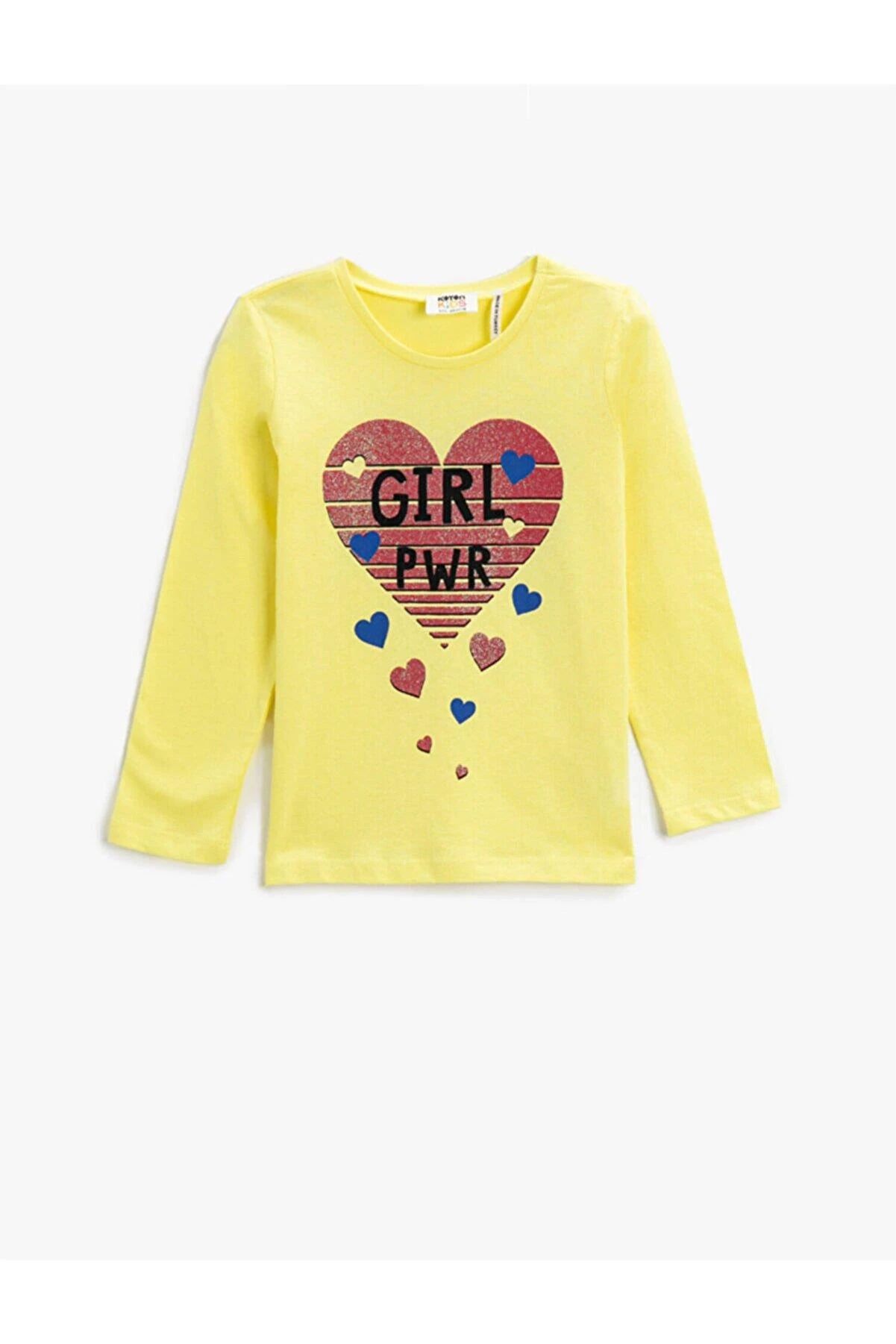 Koton Baskılı Pamuklu Tişört Uzun Kollu Bisiklet Yaka SARI/171 7-8 Yaş