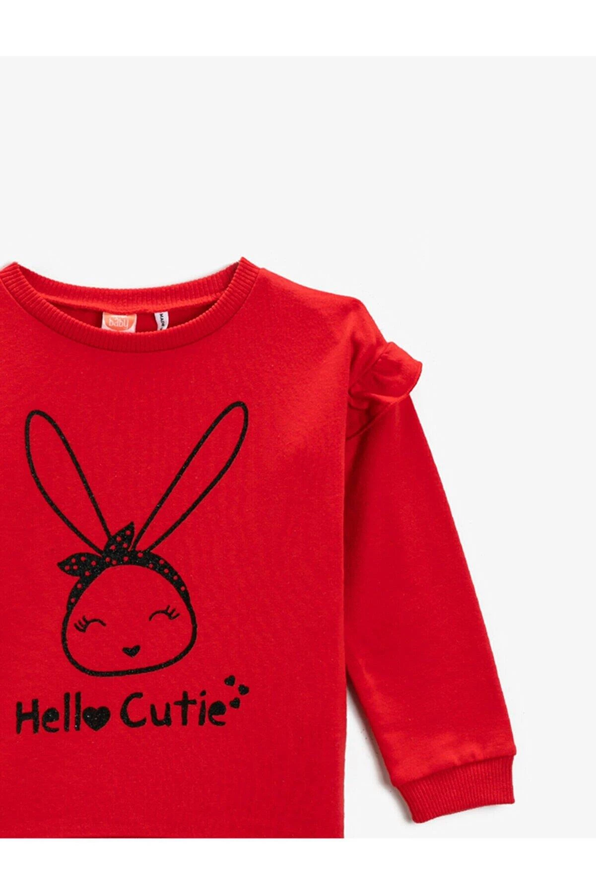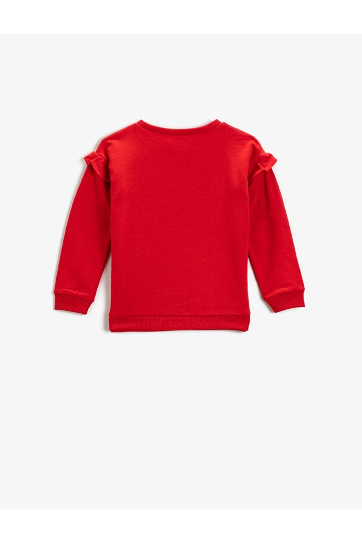 Koton Pamuklu Baskili Bisiklet Yaka Firfirli Sweatshirt Kırmızı/01P 12-18 AY