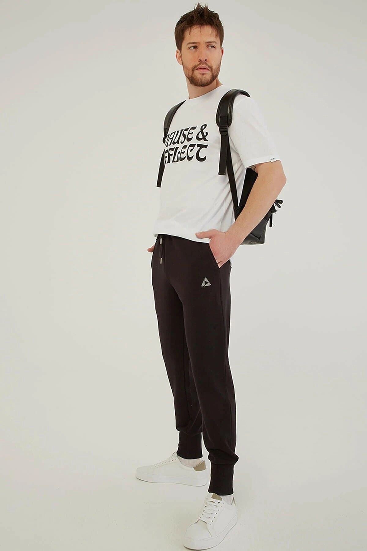 %100 pamuk Elastik bağlamalı bel, normal bel, yan cepli, logo baskılı, ribana paça, jogger eşofman alt. Model ölçüleri: Boy: 1.87, göğüs:99, bel:95 basen:94 Mankenin üzerindeki ürün m/38 bedendir. Yıkama talimatı: Ürünün iç etiket bölümünde gerekli yıkama talimatı yer almaktadır.
