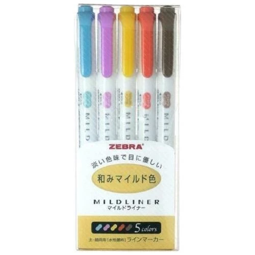 • Zebra Mildliner Çift Taraflı İşaretleme Kalemi – 5li Set Kalın ve ince çizgi için çift taraflı kullanım