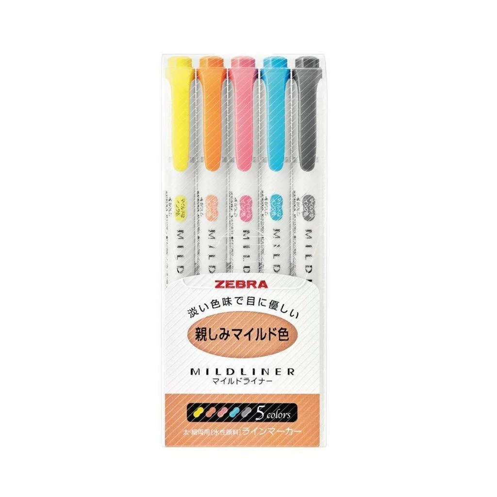 • Zebra Mildliner Çift Taraflı İşaretleme Kalemi – 5li Set Kalın ve ince çizgi için çift taraflı kullanım