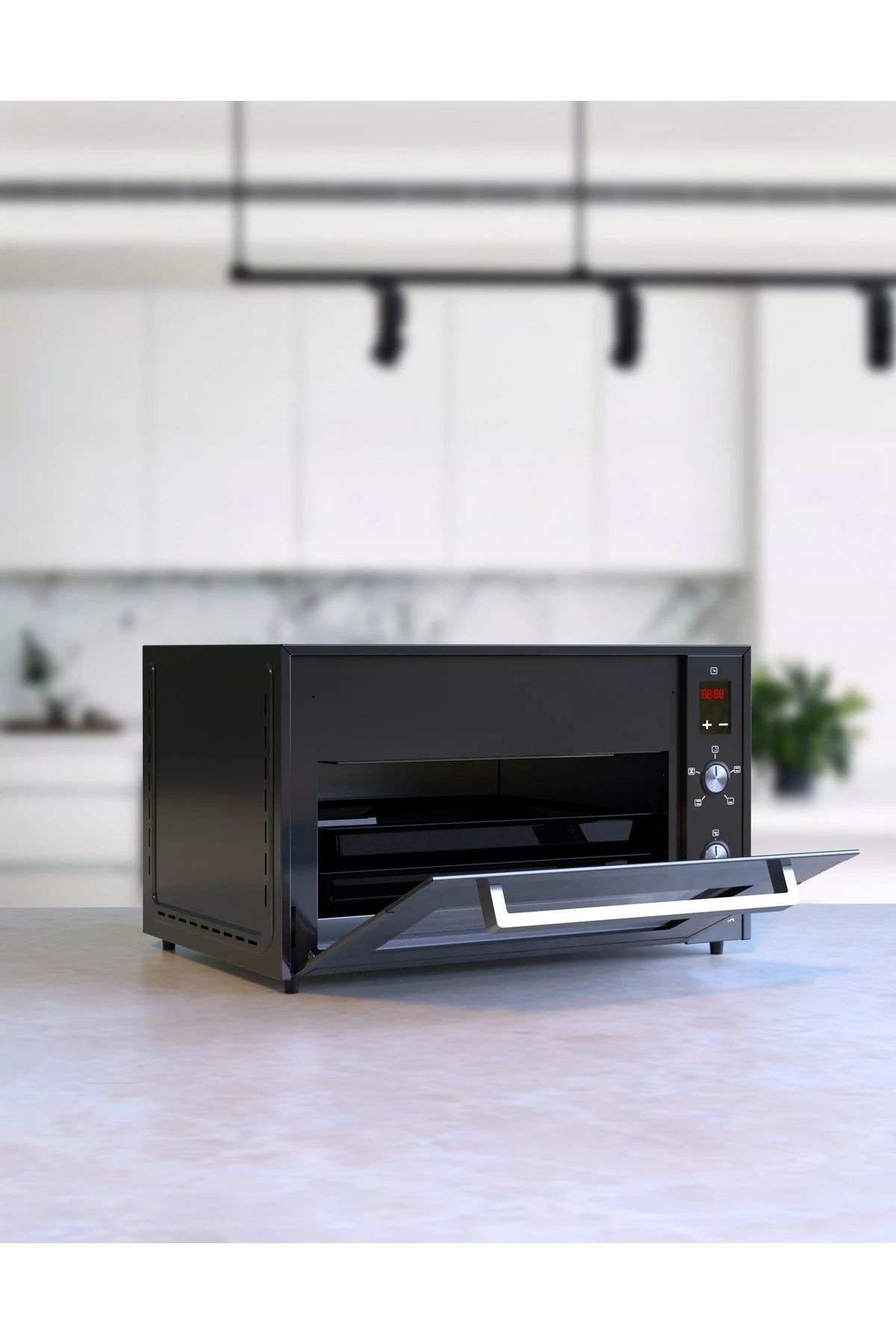 MAXFRY 45 Litre XXL Mini Fırın ve AirFryer ile Fırın özelliğinde vazgeçilmez yemeklerinizi pişirebilir, AirFryer özelliğinde ise mutfakta saatlerinizi harcamadan kısa süre içerisinde sağlıklı ve yağsız yiyecekler hazırlayabilirsiniz. Dokunmatik ekranında pişirme ayarlarınızı yapabilir, 45 Litrelik hacmiyle davet ettiğiniz misafirlere de lezzetli yiyecekler pişirebilirsiniz. Sağlıklı, çıtır ve az yağlı yemekler pişirin MAXFRY' ın bir çok güçlü özelliği var ancak en güzel tarafı 360° sıcak hava sirkülasyonu. Bu özellik en sevdiğiniz yiyecekleri hızlı bir şekilde hazırlamanıza yardımcı olur. Çıtır çıtır, lezzet dolu ve sağlıkla yiyeceklerini hazırlayabileceğiniz MAXFRY Tam size göre tasarlandı. 360° derece sıcak hava sirkülasyonu ile eşit ısı dağılımı sayesinde yiyecekleriniz eşit bir şekilde pişmesini sağlamaktadır. üÜünümüz 45 lt kapasiteli airfryer özellikli fırındır. İçerisinde bir adet normal tepsi bir adette airfryer tepsisi olmak üzere toplam 2 adet tepsi bulunmaktadır. Yağsız hazır patatesi 18 dakikada hazır hâle getirmektedir. Normal fırınlardan çok daha hızlı pişirme sağlamaktadır. İçerisinde kek, pasta, börek, sulu yemeklerinizi, patates kızartması rahatlıkla pisirebilirsiniz. Zamandan tasarruf etmenizi sağlar. Estetik, şık görünümü ile mutfağınıza farklı bir hava katacaktır. Teknik Detaylar; - Gövde ve cam ısısı CE standartlarına uygundur. - Ürünümüzün kapak kısmında 3 ayrı cam kullanılmıştır. Bu yüzden dış yüzeyde bulunan cam kısmı soğuk olup iç kısımda daha hızlı pişirme sağlar. - En son teknoloji ve iyi kalite yerli termostat kullanılmıştır. - Isı yalıtımı yapan özel katmanlar mevcuttur. - Cam elyaf yünlü kablo ile üretilmiş olup güvenli bir elektrik sistemi kuruludur. - Güvenliği ile kendini kanıtlamış özel Yerli Elektrik Kutusu kullanılmıştır. - İçerisinde zararlı kimyasallar bulunan izocam kullanılmamaktadır. - Pop Up düğmeler kullanılmıştır. - Ürünümüz net 45 Litredir. - Kesinlikle kimsayal maddeler içeren parçalar kullanılmamıştır.