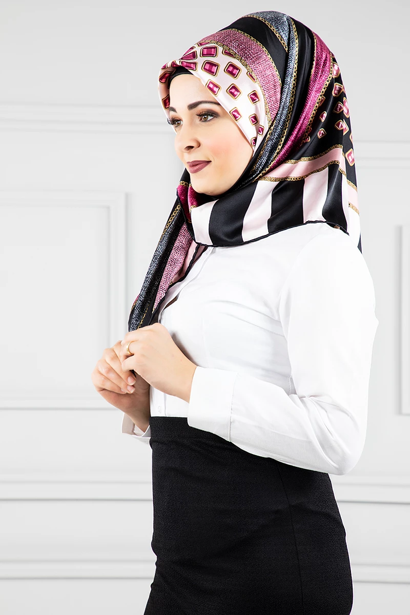 Needion - Geometrik Desenli 3 Renk Eşarp-Gül kurusu