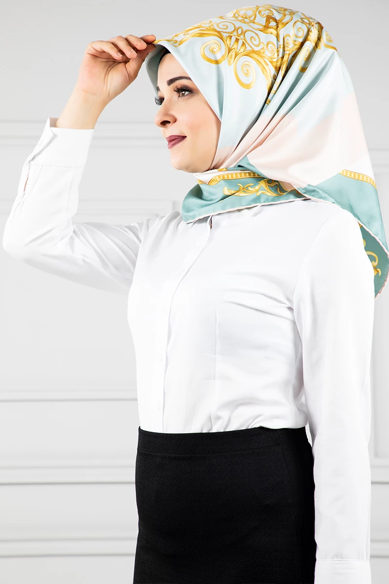 Gold Desenli 2 Renk Eşarp-Mint