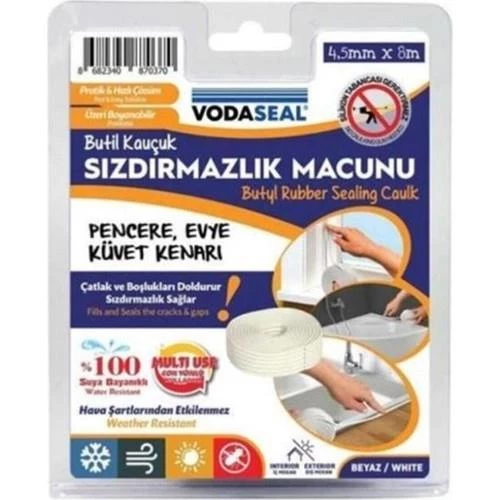 • Vodaseal Sızdırmazlık Macunu 4,5mmx8mt Vodaseal Butil Kaucuk Sızdırmazlık Macunu Pencere, Evye, Küvet Kenarları için kullanıma uygundur
