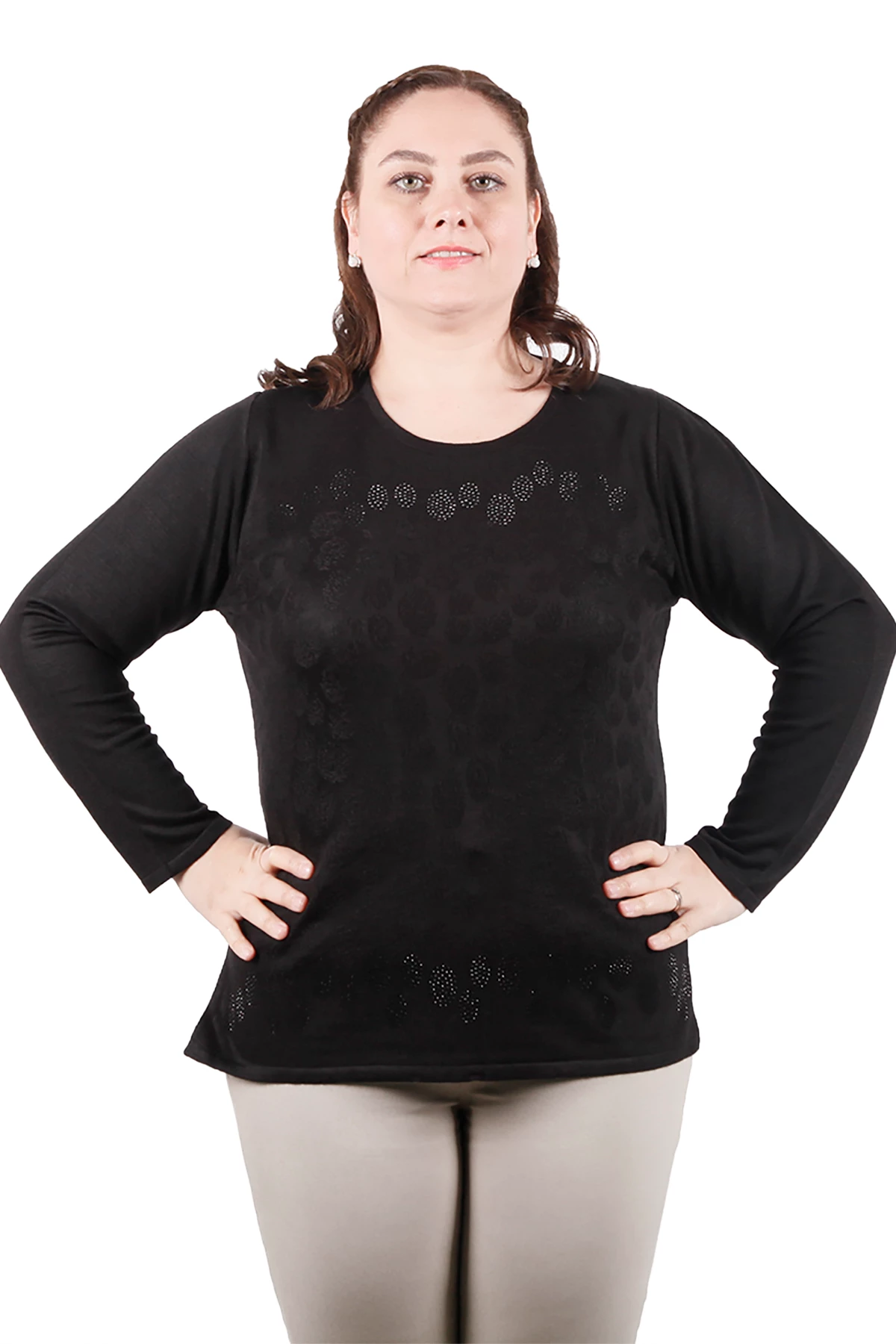 Needion - Sarıay Kadın Büyük Beden Triko Bluz 6457 Siyah/Black 29W78006457 Siyah/Black L KADIN
