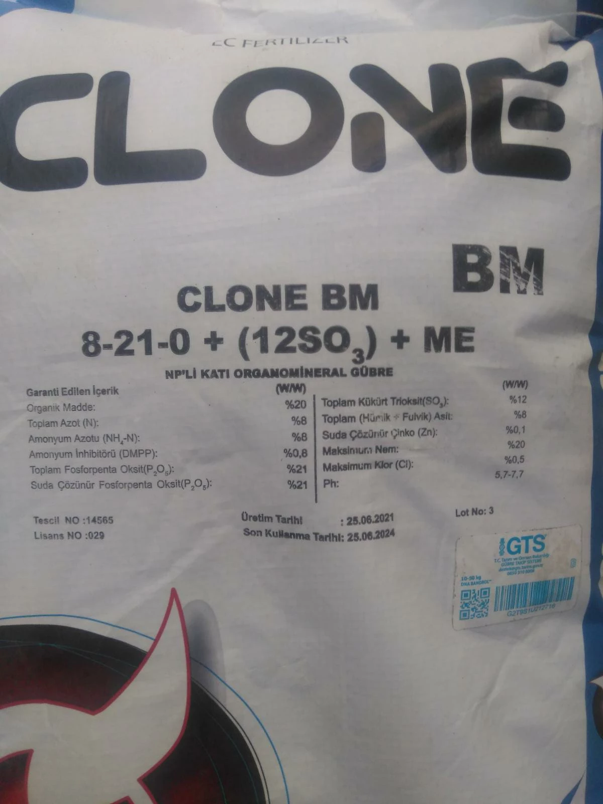 Clone BM 8-21-0 + (12 SO3) +ME Gübre (25 kg)