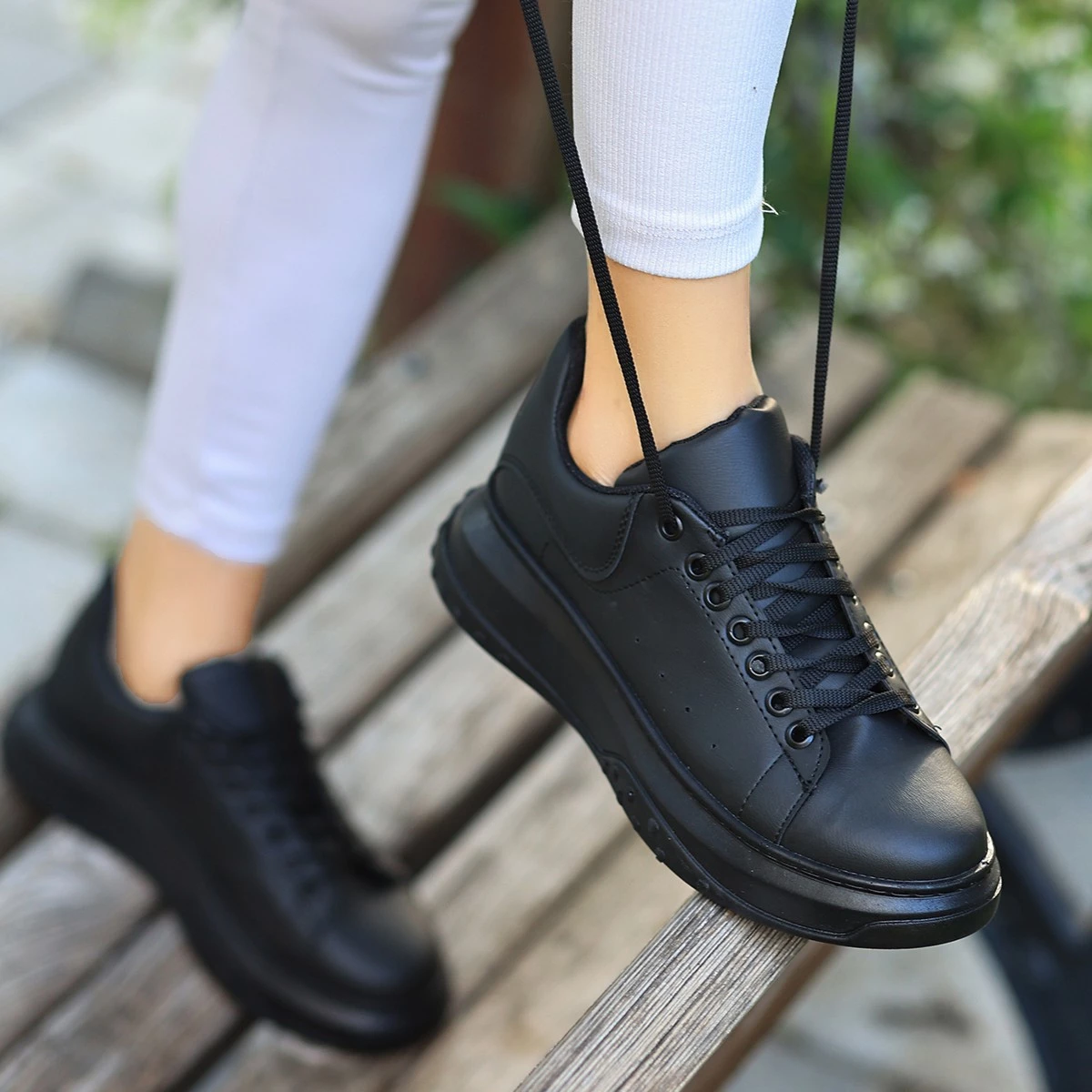 Ento Siyah Cilt Siyah Tabanlı Bağcıklı Spor Ayakkabı 36