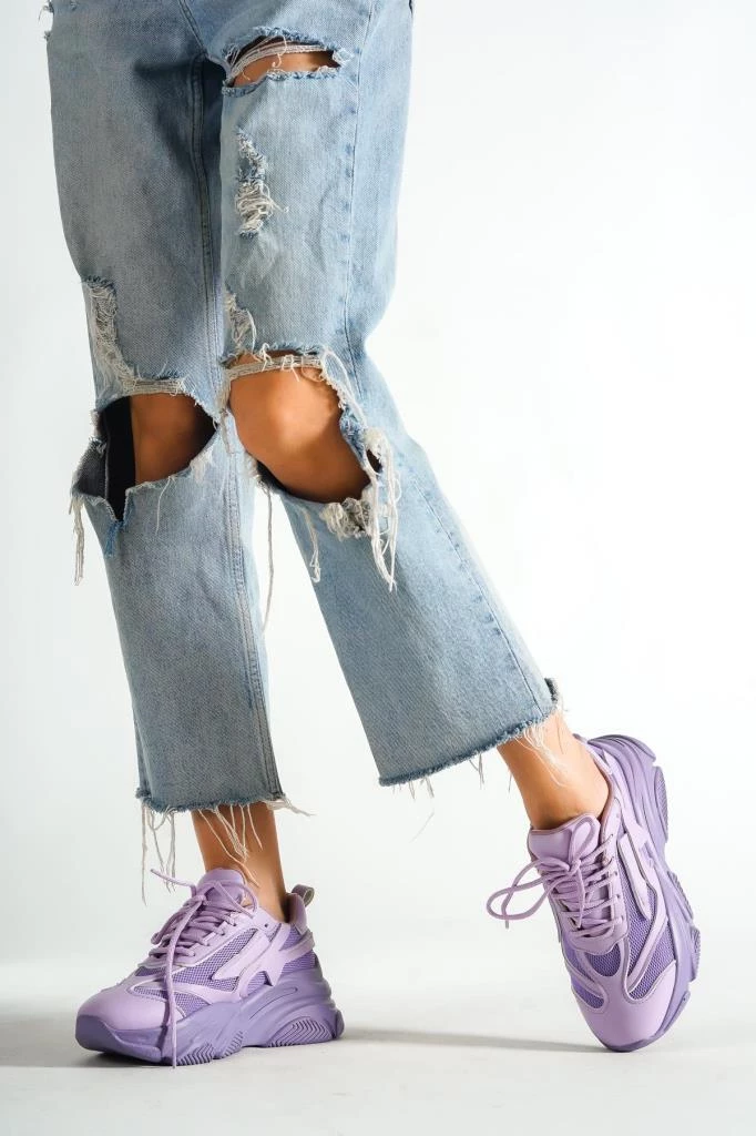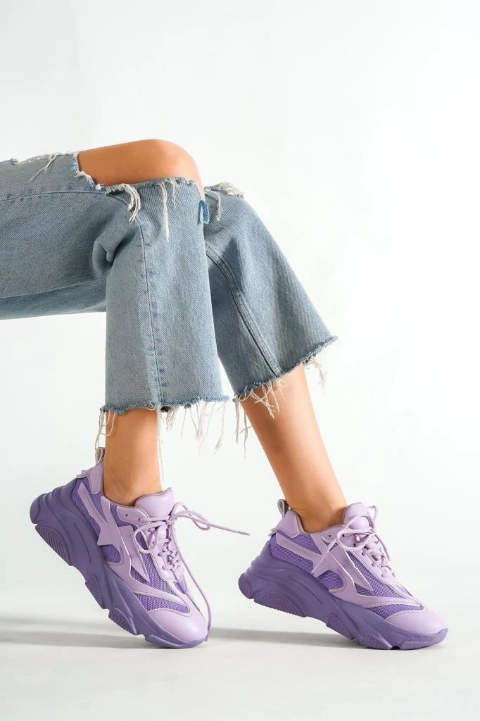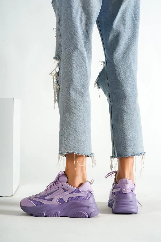 Bayan Lila Yüksek Tabanlı File Detaylı Sneaker Günlük Spor Ayakkabı Kecsp140 LİLA 39