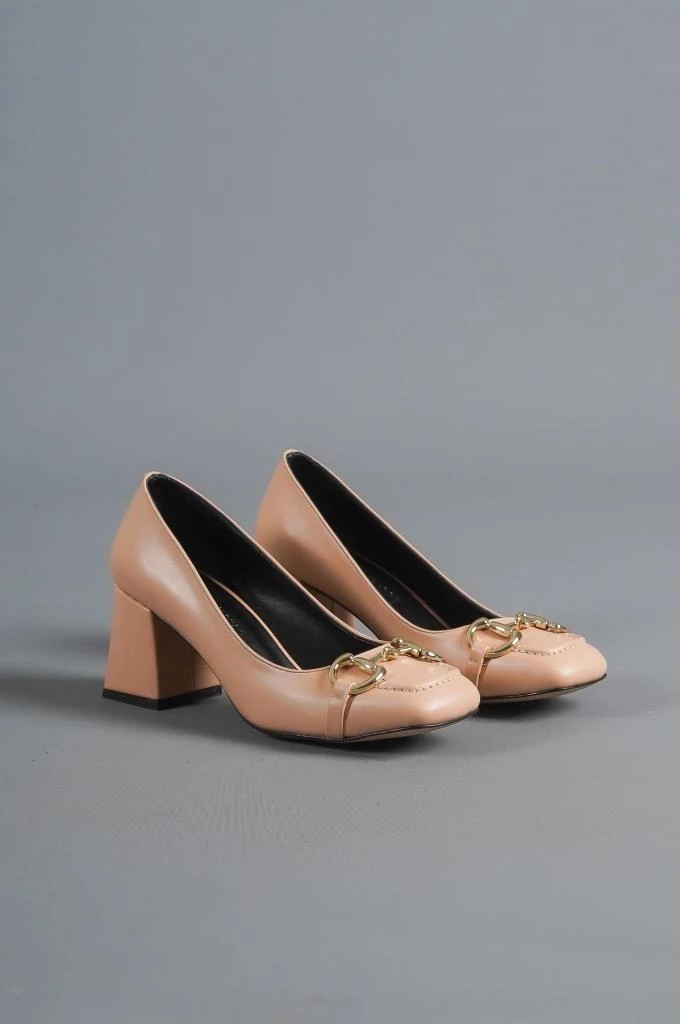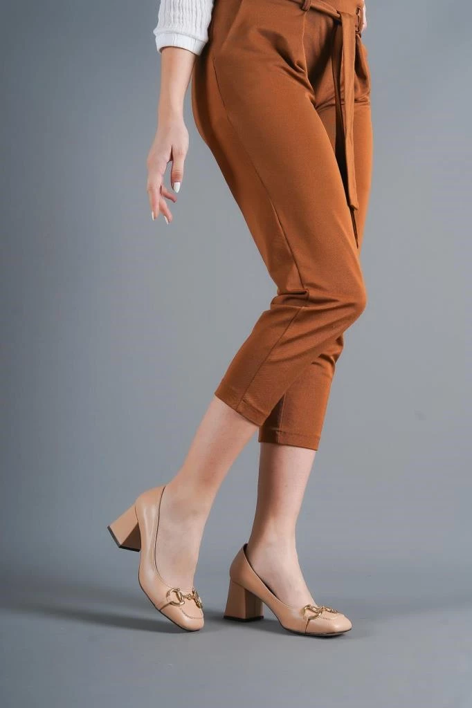 Bayan Nut Ell Cilt Toka Detaylı Küt Burun Topuklu Ayakkabı NUT 37