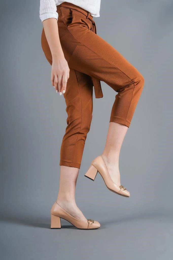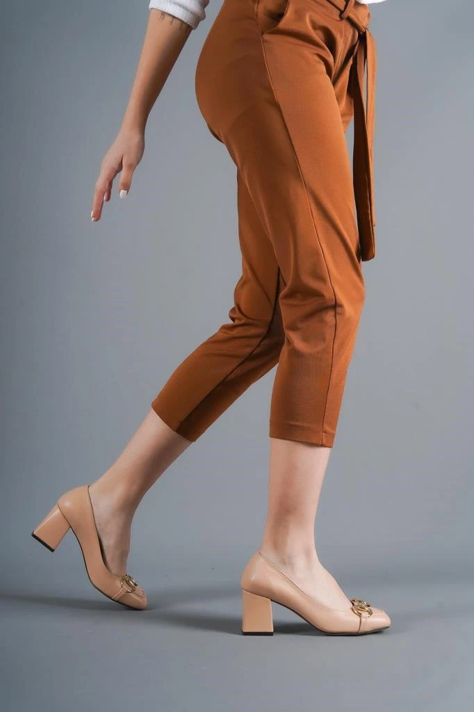 Needion - Bayan Nut Ell Cilt Toka Detaylı Küt Burun Topuklu Ayakkabı NUT 37