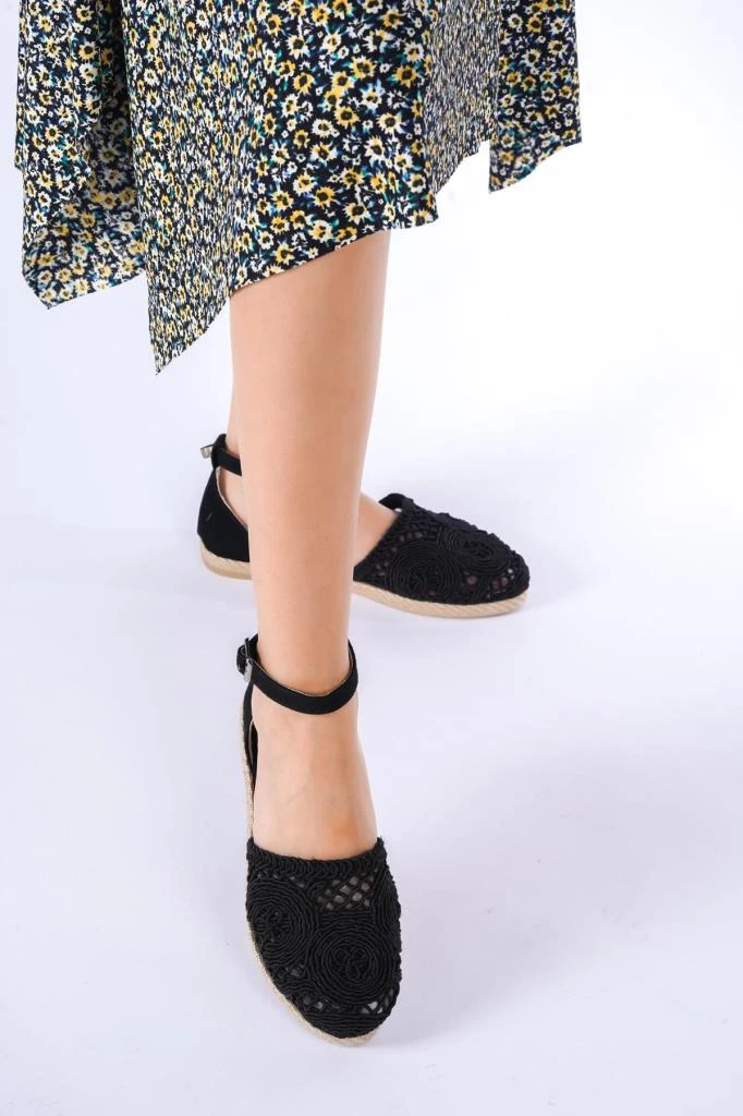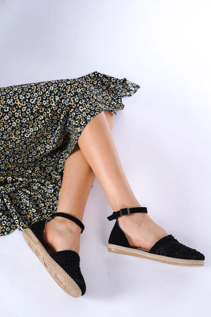 Needion - Bayan Siyah Dantel Detaylı Sandelet SİYAH 37