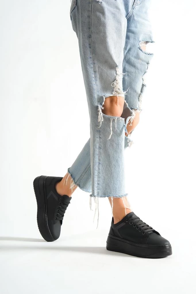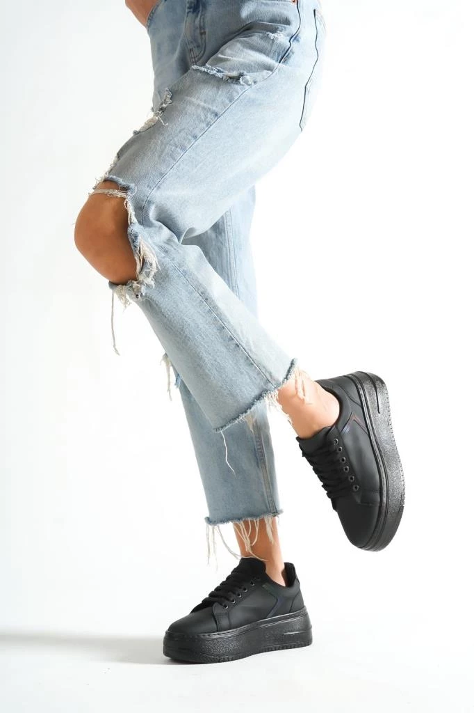 Needion - Bayan Siyah Hologram Yüsek Tabanlı Bağcık Detaylı Sneaker Günlük Spor Ayakkabı Kecsp122 SİYAHHOLOGRAM 36