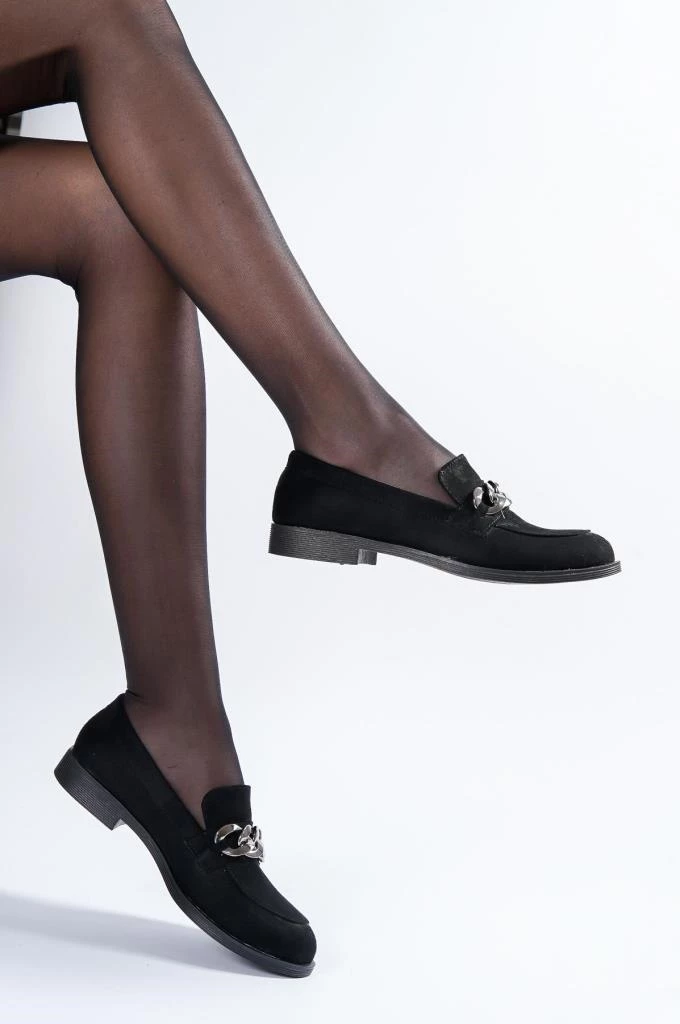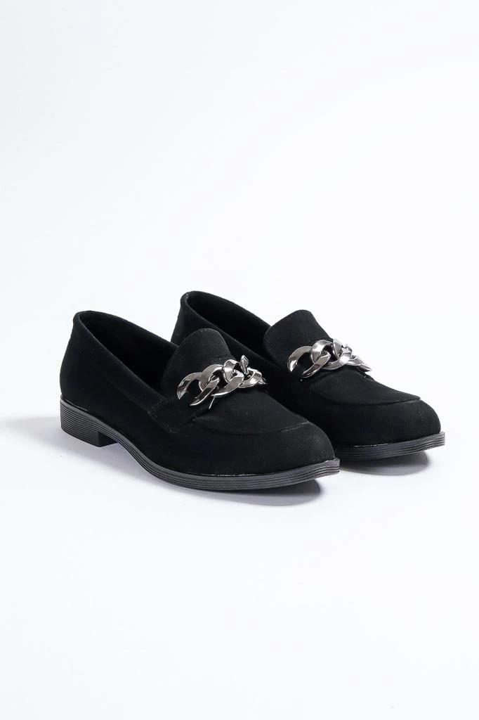 Bayan Siyah Rugi Süet Silver Zincir Detaylı Babet SİYAH 37