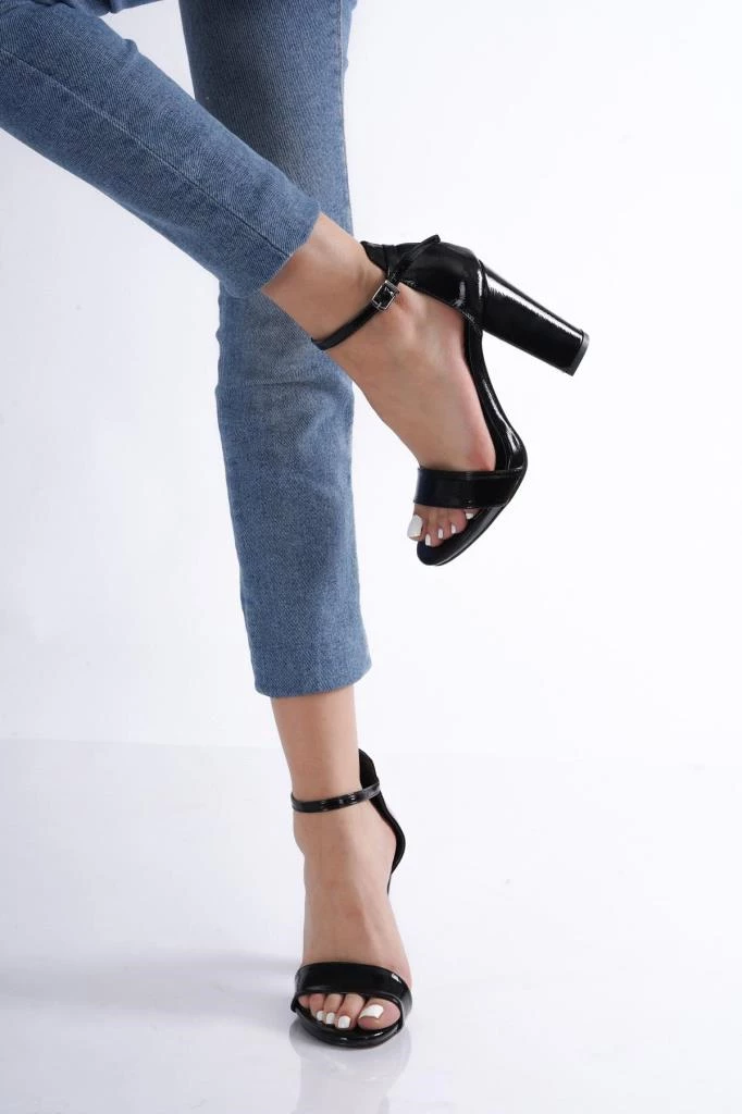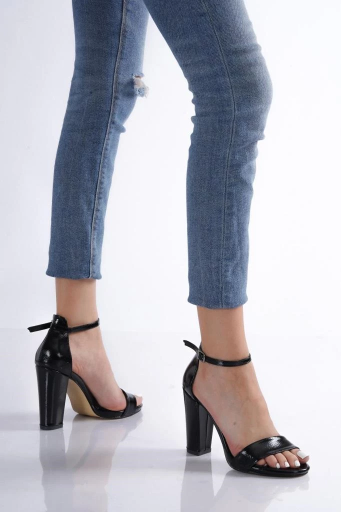 Bayan Siyahkırışık Yüksek Kalın Topuk Tek Bant Bilekten Bağlamalı SİYAH KIRIŞIK 39