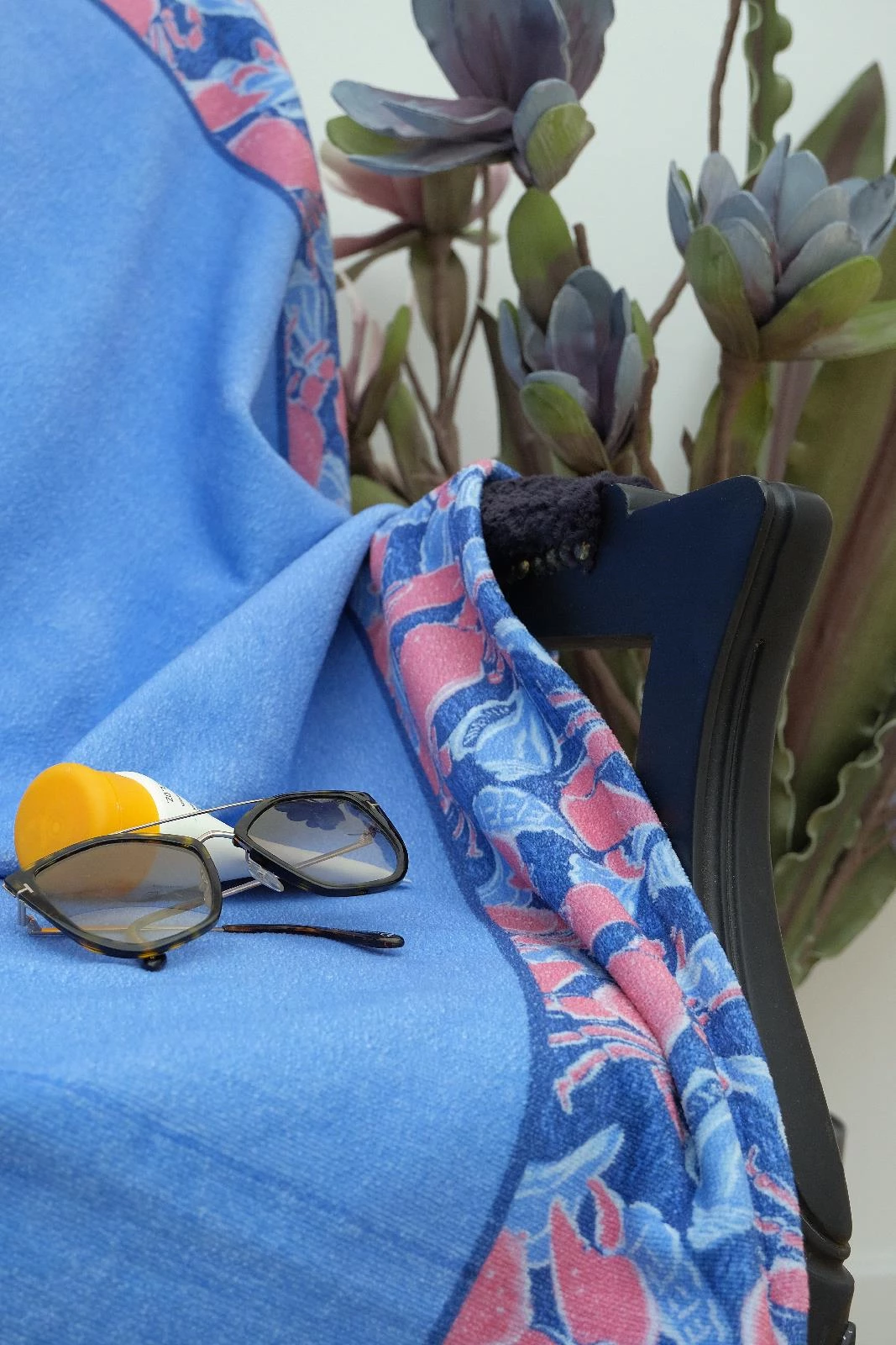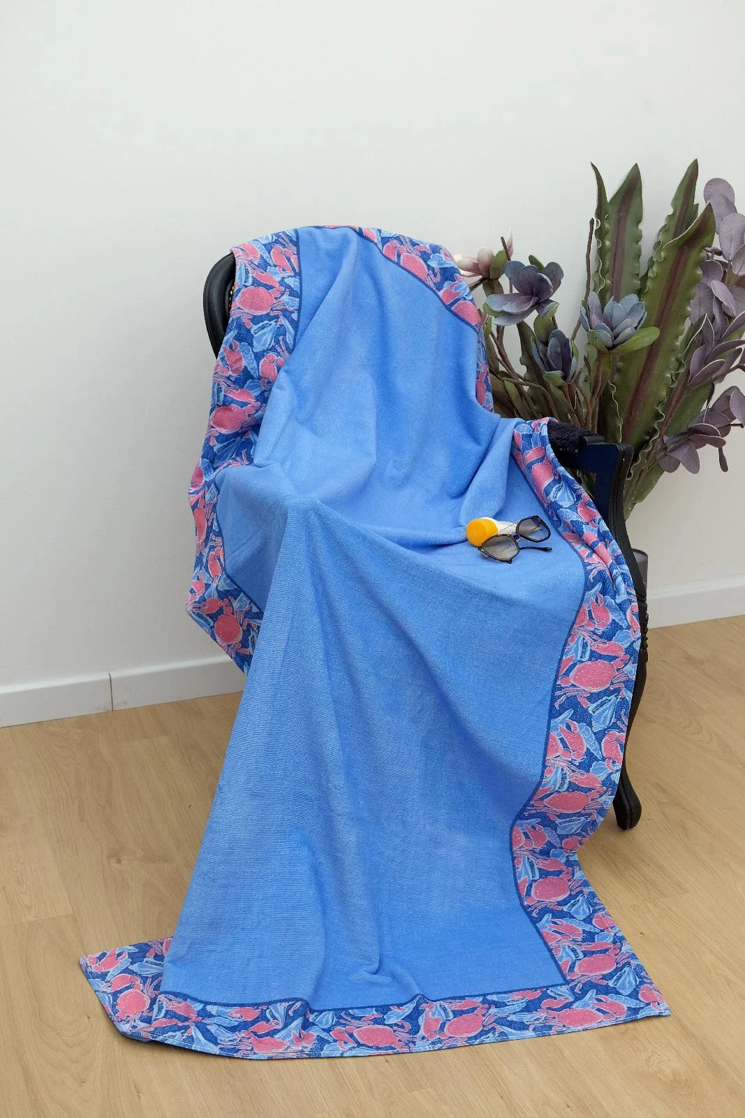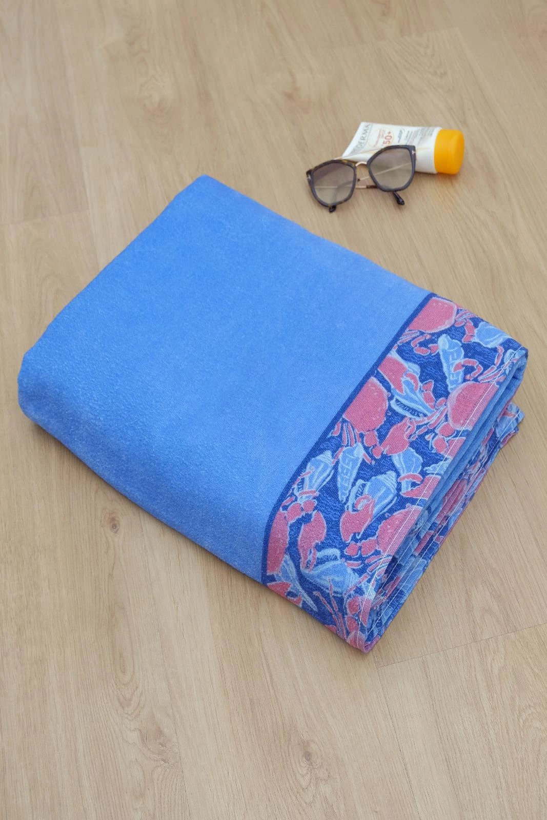 100x175 Mavi Yengeç Ve Deniz Kabuğu Desenli Plaj Havlusu
