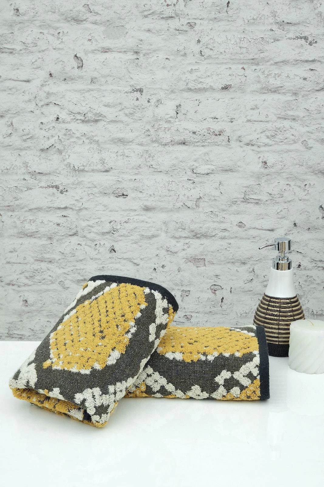 Needion - 2'li 50X90 Hardal Jakarlı El-Yüz Havlusu