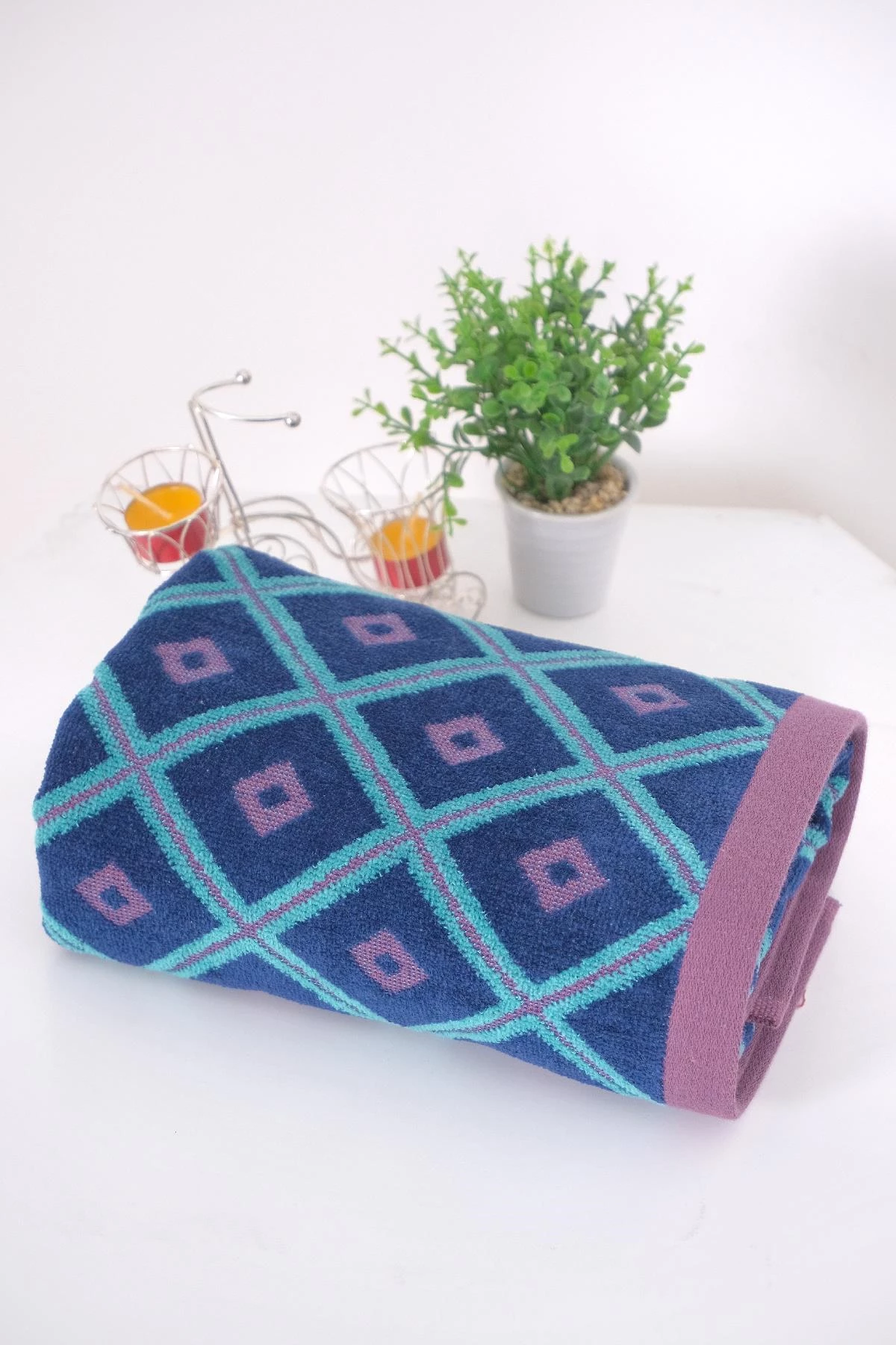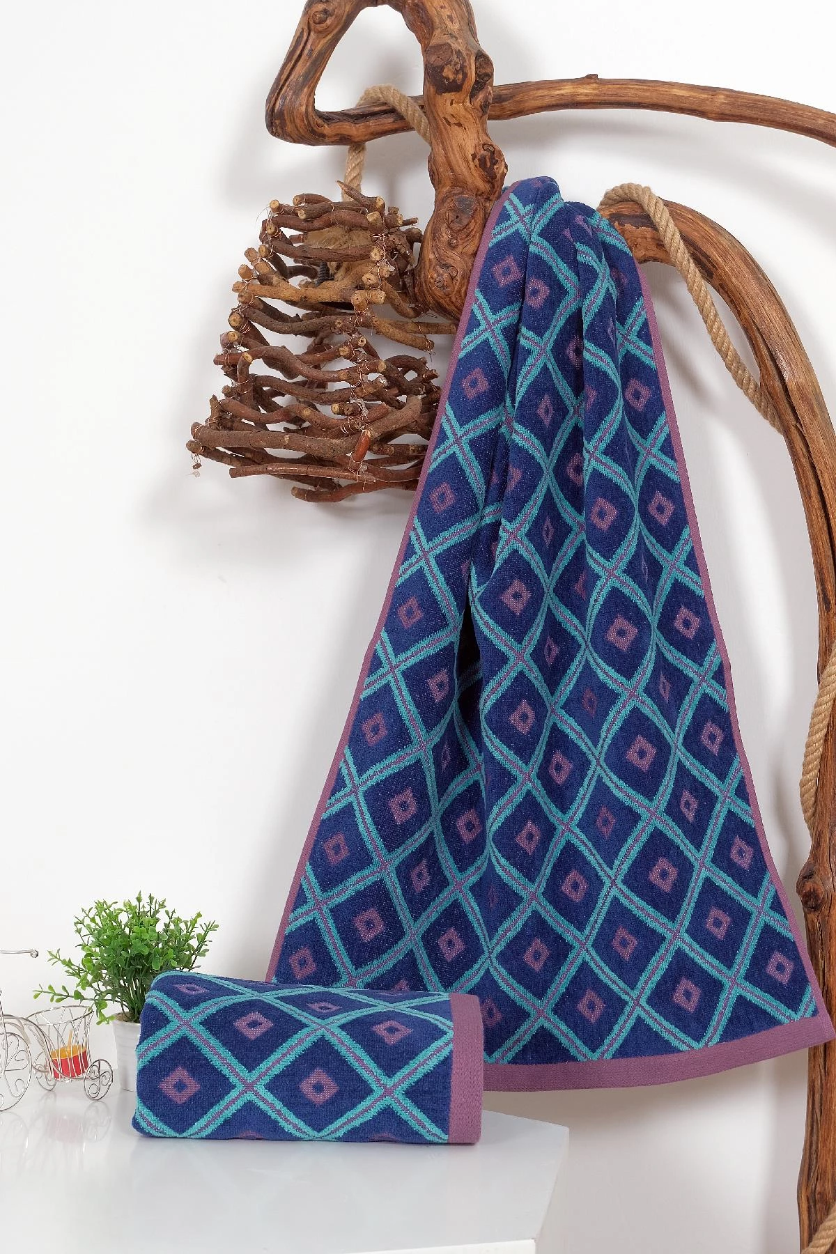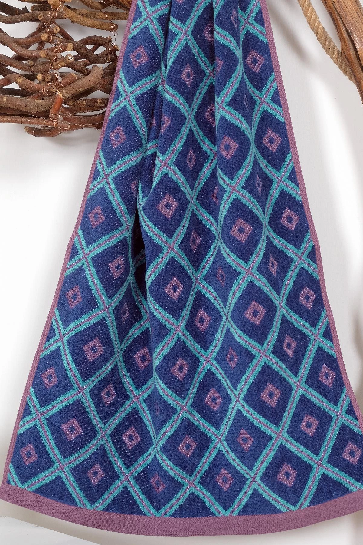 2'li 50x90 Mavi Kadife Jakar Desenli El- Yüz Havlusu