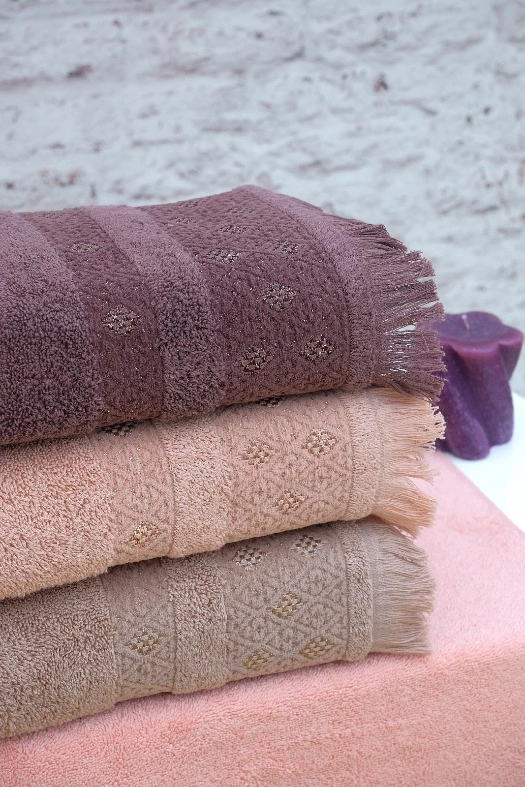 4' lü 50 x 90 Simli Diamond Desen Bordürlü El-Yüz Havlusu