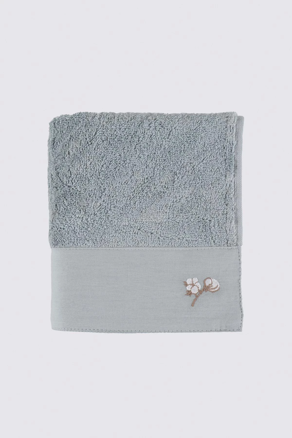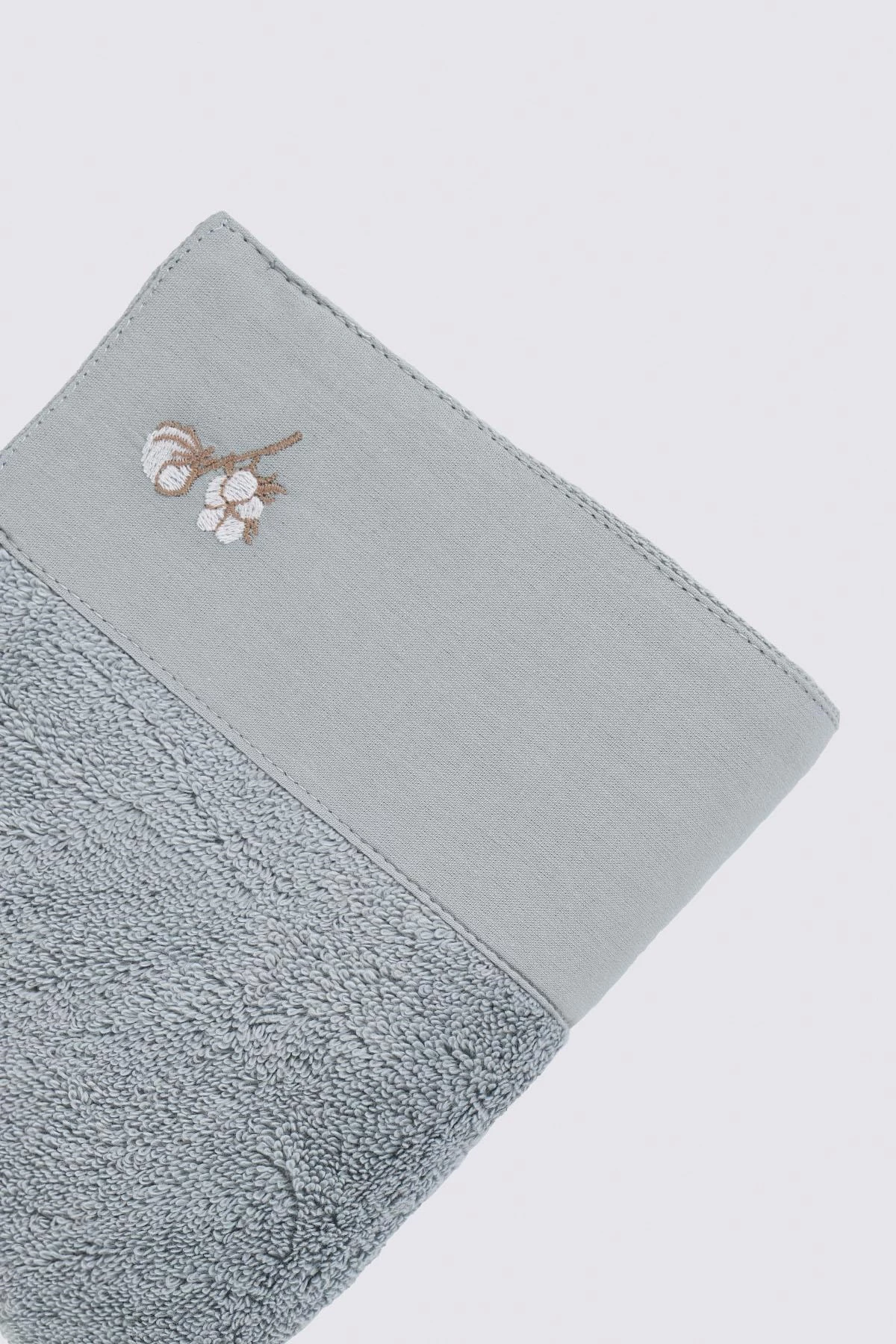 Needion - Ecocotton Pure Cotton 4'lü El Yüz Havlusu %100 Organik Pamuk Bez Bordürlü Nakışlı Mavi 50x76 Cm Mavi 50x76