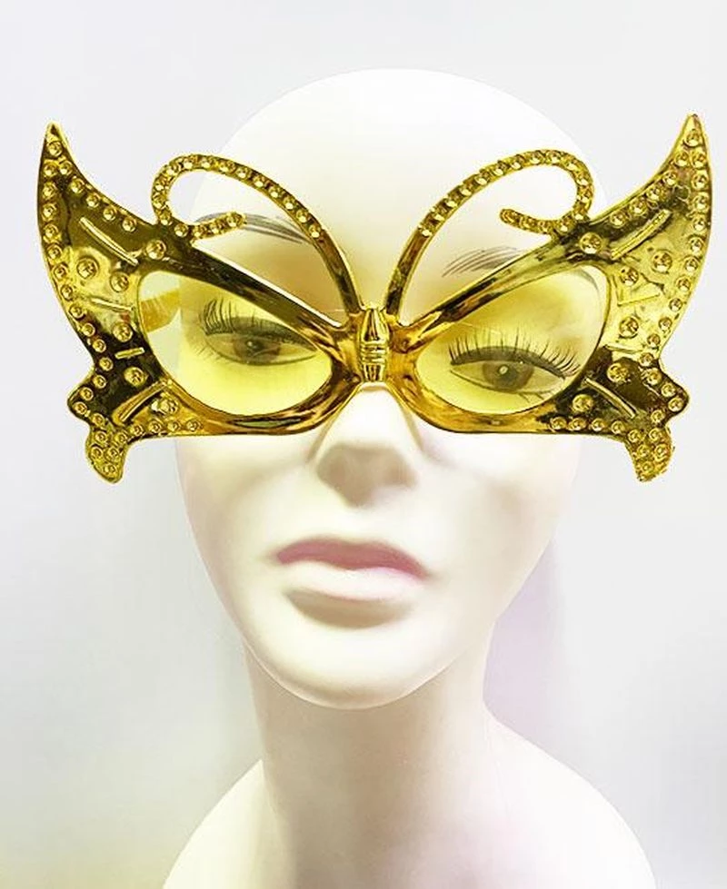 Metalize Kelebek Şekilli Parlak Parti Gözlüğü Altın Renk 15x9 cm