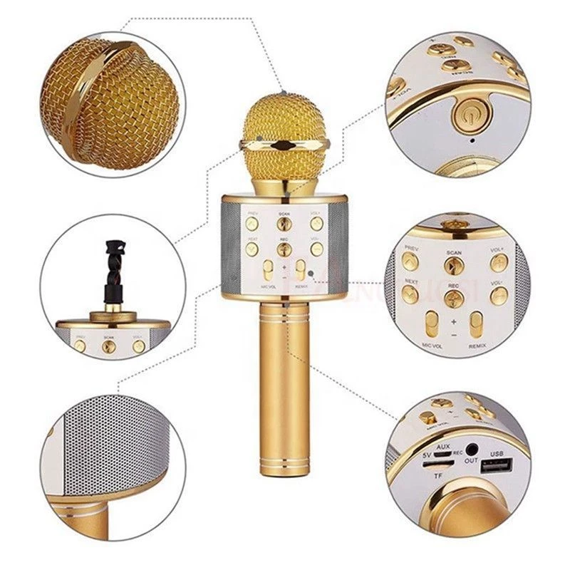 Wster Ws-858 Karaoke Mikrofon Bluetooth Hoparlör Aux Usb Mikro Sd Kart Girişli Ürün Özellikleri:Ws-858 Karaoke MikrofonBluetoothSd Kart GirişiTelefon GörüşmesiSes DeğiştirmeBass Tizz Ses Eko Ayarı- Kablosuz Müzik Akışı İçin Gelişmiş Audio Dağıtım Profili(A2Dp).- Arama İçin Eller Serbes T Profili (Hfp).- 33Ft'E Kadar Mesafe(10M).- Bluetooth 2.0 Ve Üstü Berrak Dijital Ses Sinyal Teknolojisi- 40Mm Hoparlör Ünitesi İle Mükemmel Ses Kalitesi Sunar,- Usb Voltajı: Dc5V, Mikro Usb Kablosu İle Rahat Şarj Edilebilme,- Bluetooth Çekim Alanı: 10MMikro Sd Kart Ve Usb Girişi İle Dileğiniz Müziği RahatlıklaDinleyebilirsiniz. Usb Ve Aux Girişi İle Harici HoparlörOlarak Da Kullanabilirsiniz.Panelinde Yer Alan Fonksiyon Tuşlarıyla Dilediğiniz GibiYönlendirebilirsiniz.Bu Teknoloji Harikası Ürünün Çıkardığı Sese Kulaklarınızİnanamayacak...Ürün Boyutu:280 Mm X 100 Mm X 90 MmÜrün Kodu: Ws-858