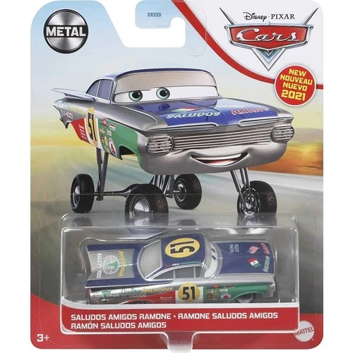 Cars Ürün Özellikleri  Cars 3 filminin en sevdiğiniz karakterleri şimdi tekli paketlerde sizlerle 15511cm ölçeğindeki heyecan verici film detayları olan bu koleksiyona çocuklar bayılacak Şimşek McQueen Cruz Ramirez ve Jackson Storm ve daha birçok karakterin bulunduğu bu büyük koleksiyon ile çocuklar araba koleksiyonuna başlayabilir ya da araba koleksiyonunu genişletebilirlerKarakterlerin hepsini toplayın ve Cars koleksiyonunuzu tamamlayın Disneyden premium seriye sahip bir araba yani bir çizgi film karakterinin tam bir kopyasıModel Saludos Amigos RamoneYaş Aralığı 3 Yaş
