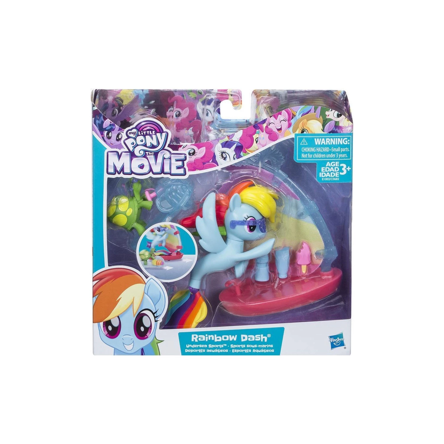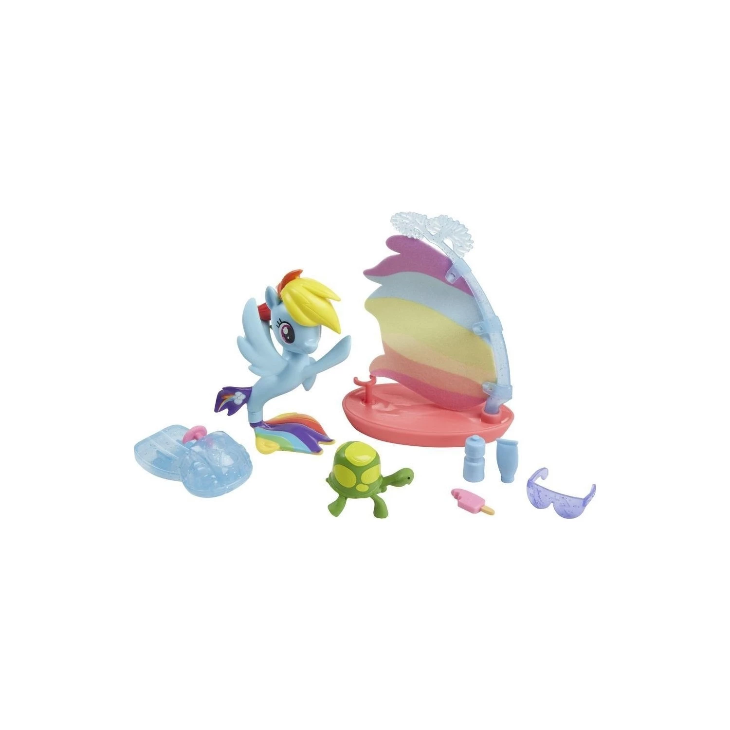 My Little Pony'den esinlenerek: The Movie, bu Rainbow Dash deniz taşıtı figürü, denizaltı sporunda yıldız sporcu gibi davran! Tahtasındaki suya kaydığını ve aracın yelken açtığını düşünün. Onun pet kaplumbağa figürü, scooter'ıyla da eğlenceye katılabilir!