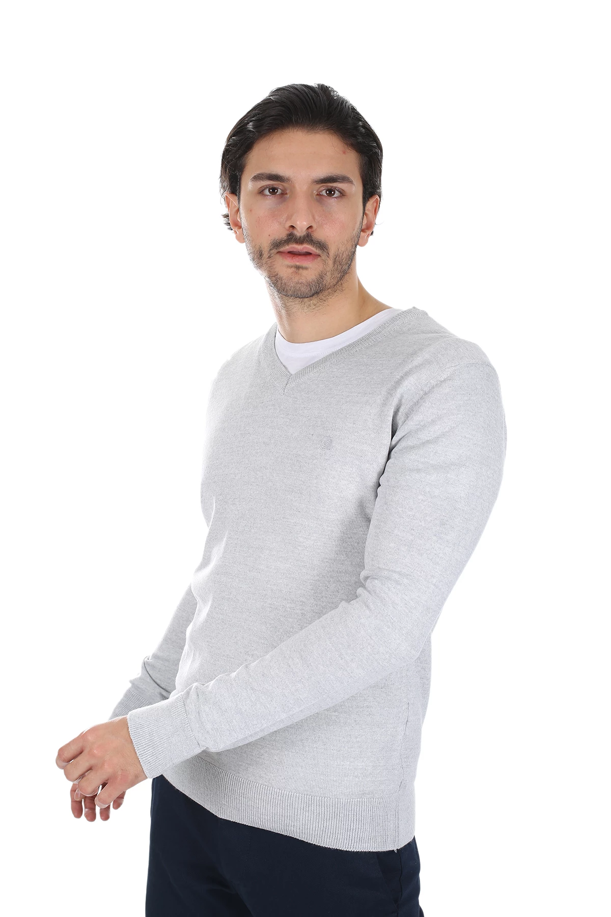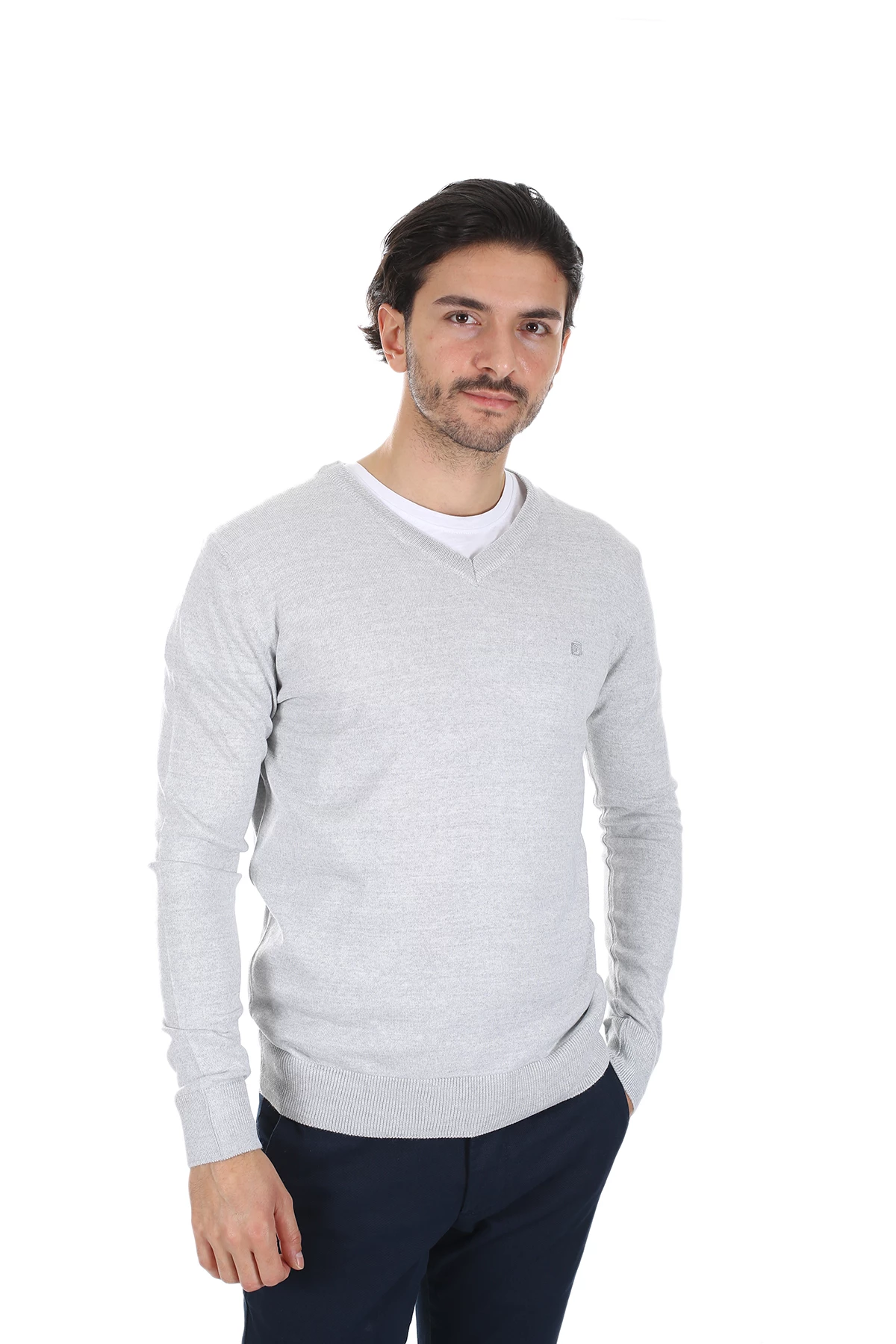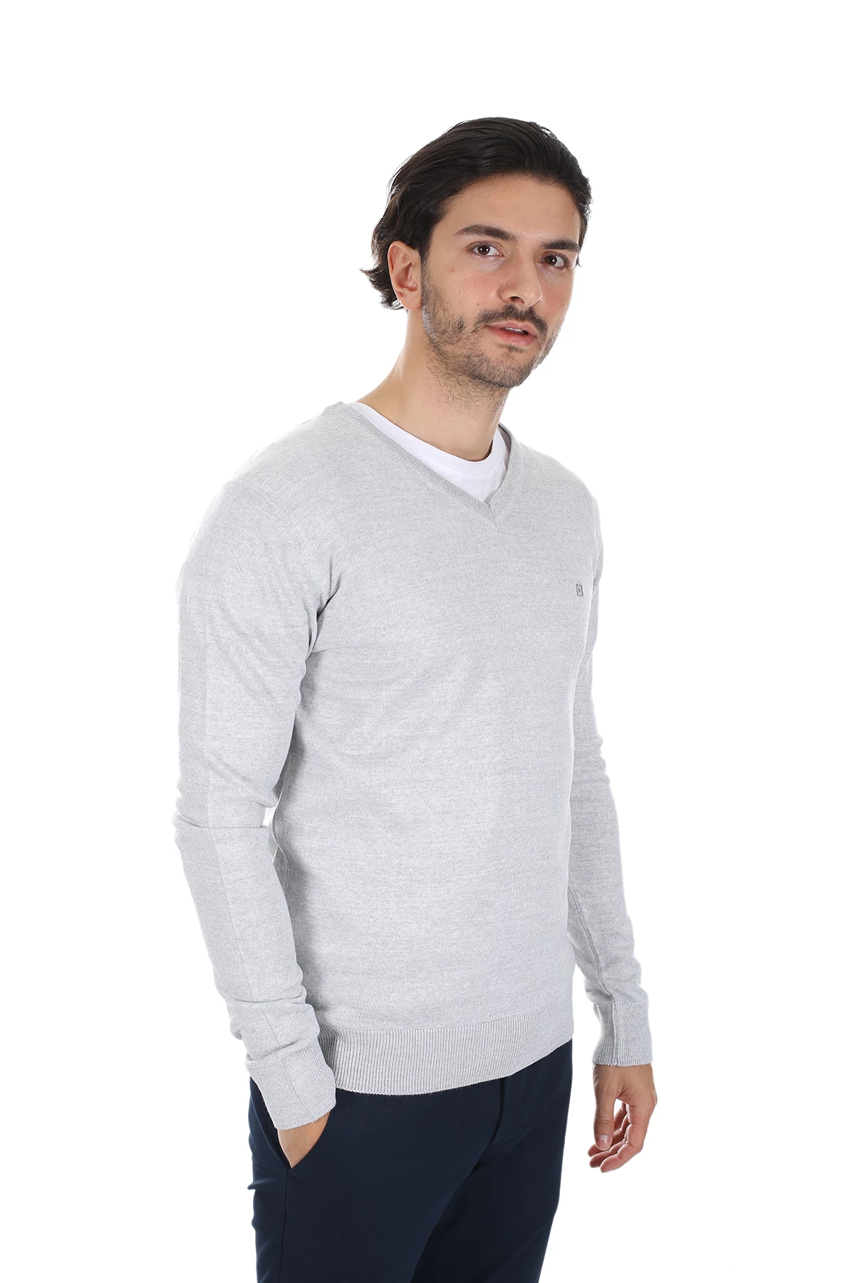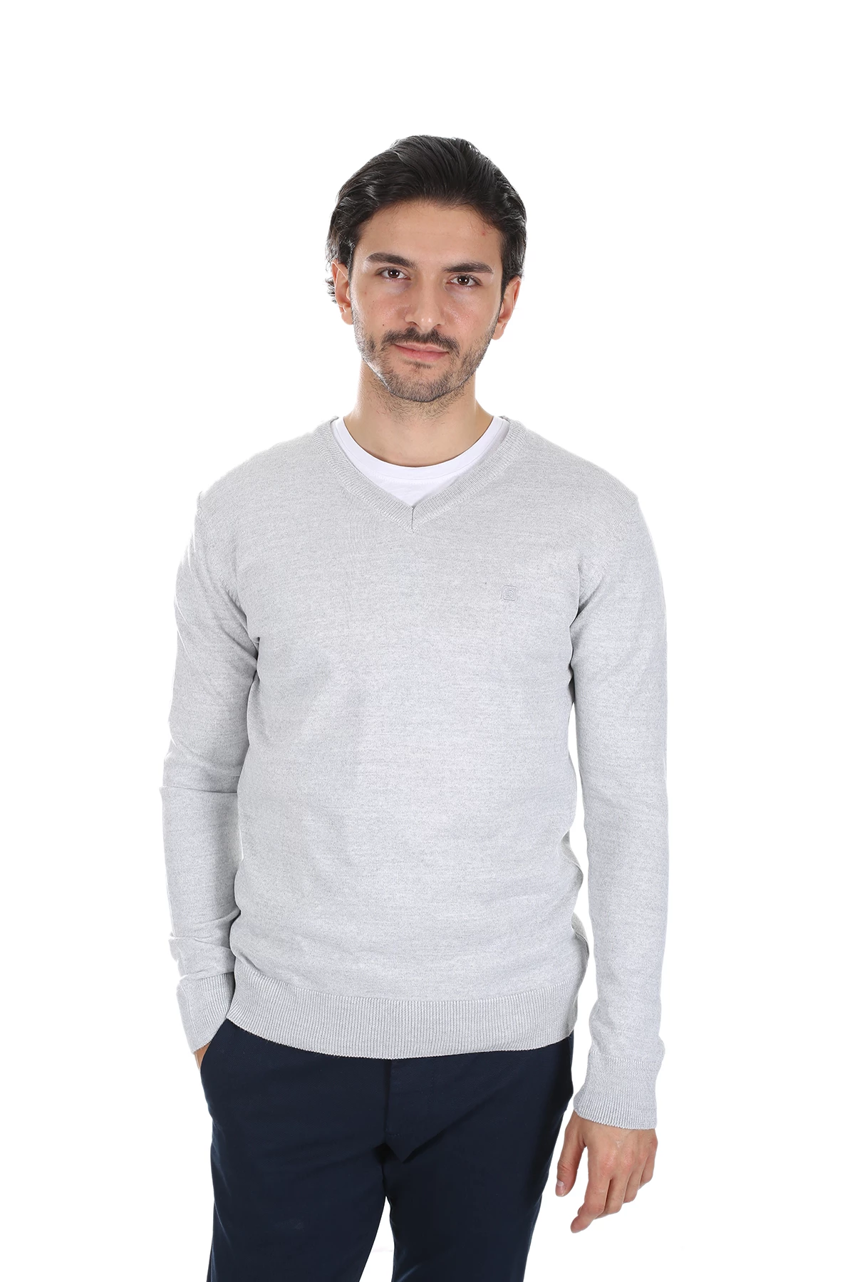 Needion - Diandor V Yaka Erkek Triko A.Gri/L.Grey 1925005 Açık Gri 2XL