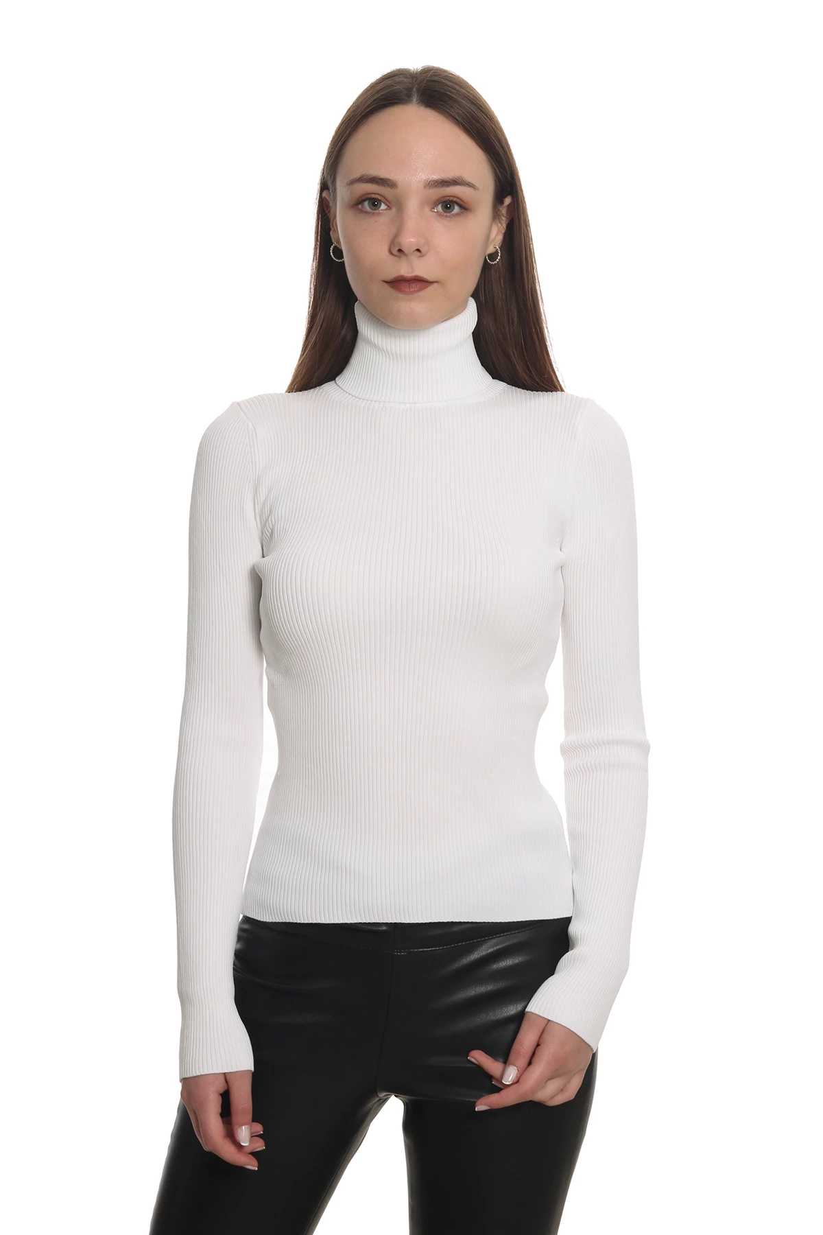 Dilvin Kadın Balıkçı Yaka Triko Kazak Fitilli T-2386 Ekru/Ecru 29W78002386 Ekru
