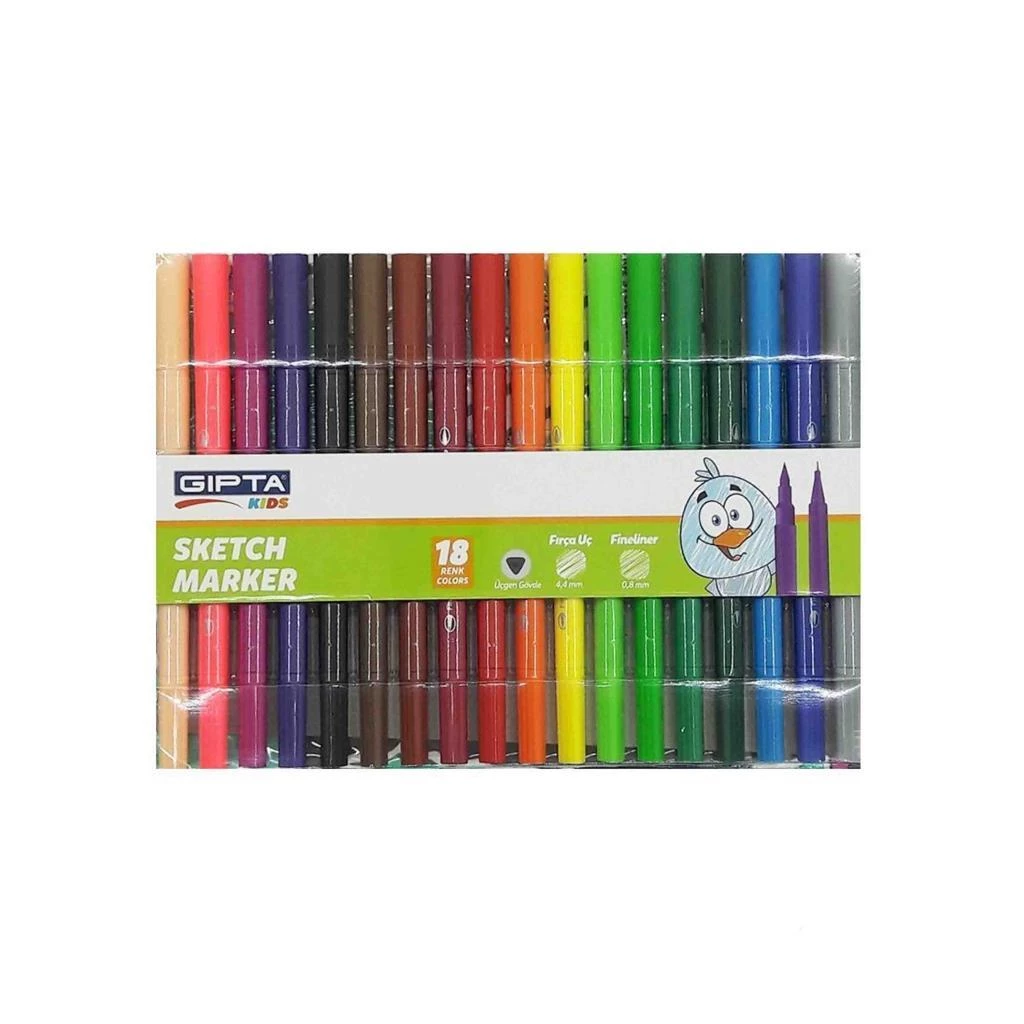 Gıpta Sketch Marker 18 Renk Fırça Uç+Fineliner Pvc Çantalı