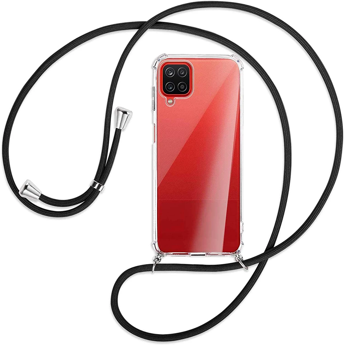 Samsung Galaxy M12 Kılıf Boyun Omuz Askılı İpli Şeffaf Silikon Siyah