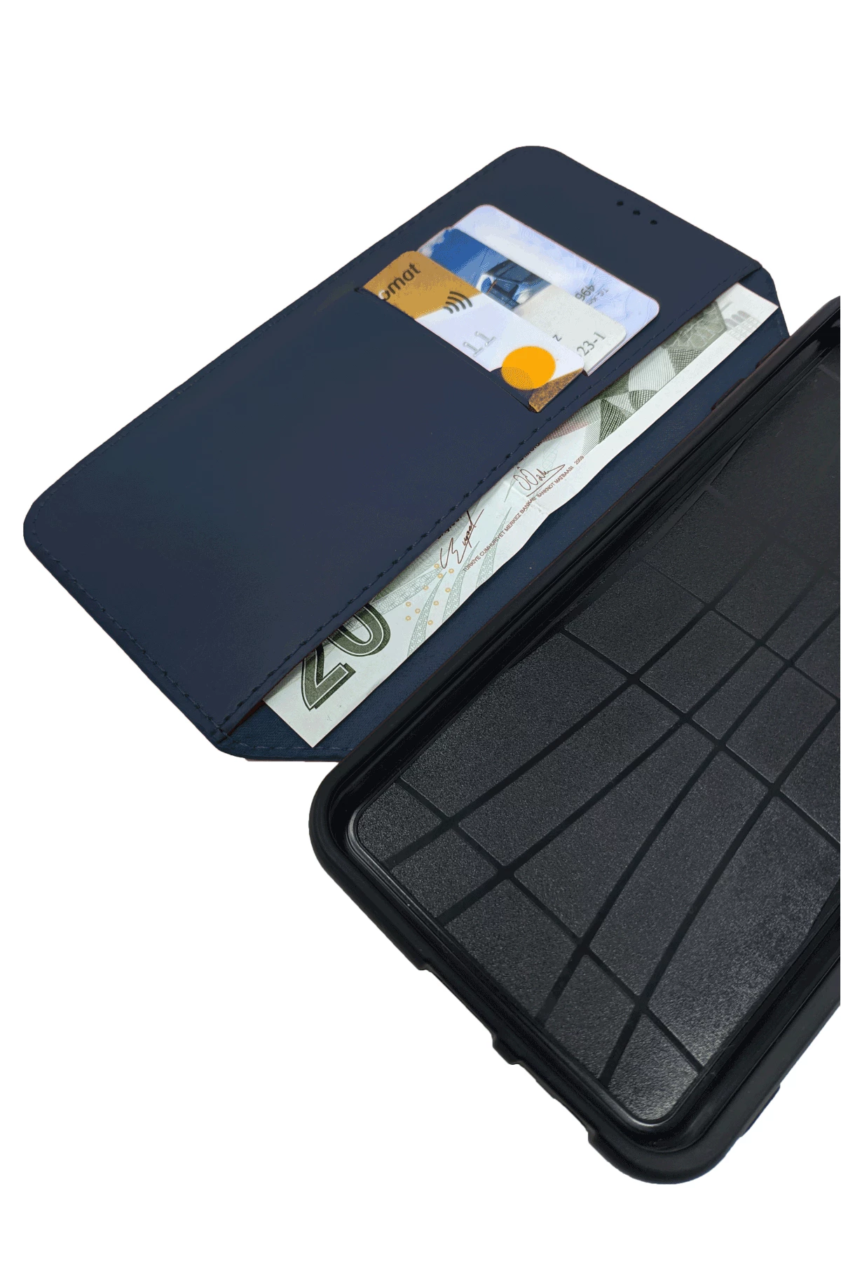 Eonaks Samsung Galaxy M13 4G Flexi Kapaklı Cüzdan Kılıf Düz Lacivert Lacivert STD