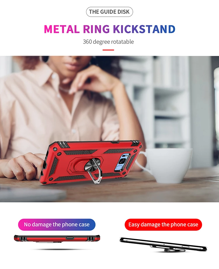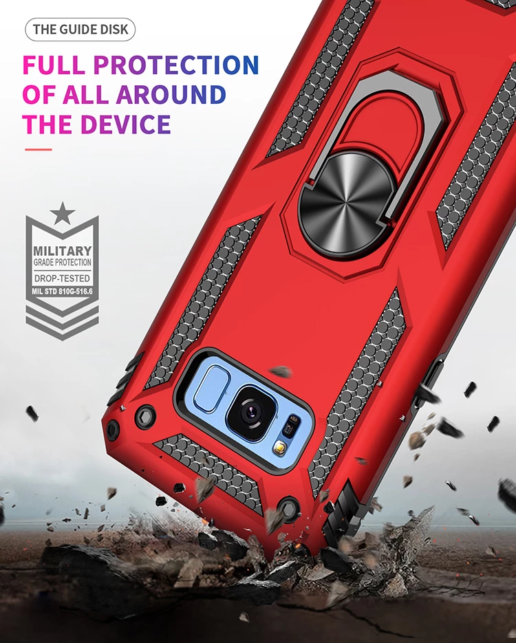 Teleplus Samsung Galaxy S8 Plus Kılıf Vega Yüzüklü Çift Katmanlı Tank Silikon Renkli