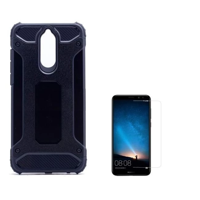 Teleplus Huawei Mate 10 Lite Çift Katmanlı Tank Kapak Kılıf Cam Ekran Koruyucu Siyah