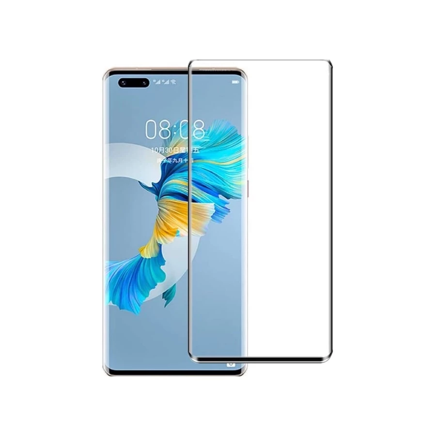 Needion - Teleplus Huawei Mate 40 Pro Kılıf Deri Dokulu Niss Silikon   Tam Kapatan Ekran Koruyucu  Kamera Koruyucu Siyah