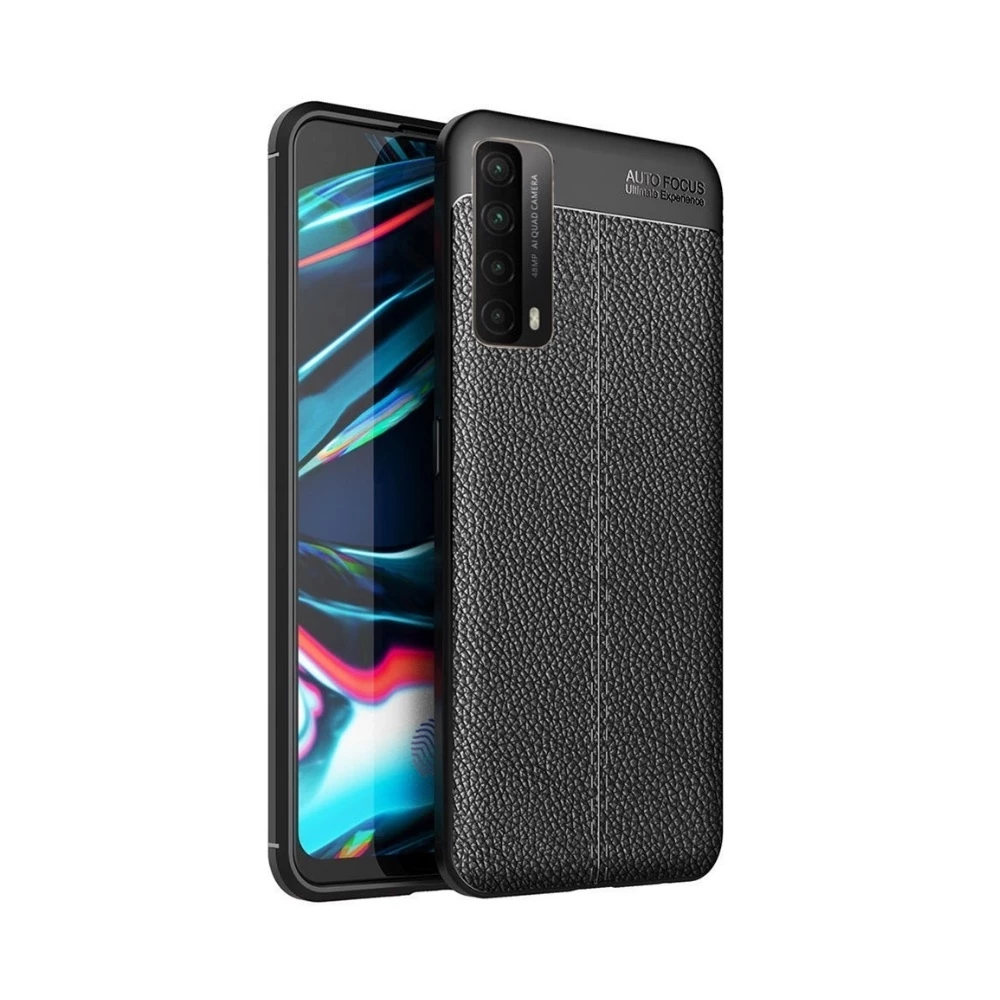 Teleplus Huawei P Smart 2021 Kılıf Deri Dokulu Silikon Siyah