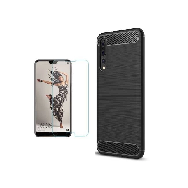 Needion - Teleplus Huaweı P20 Pro Özel Karbon ve Silikonlu Kılıf   Nano Ekran Koruyucu Siyah