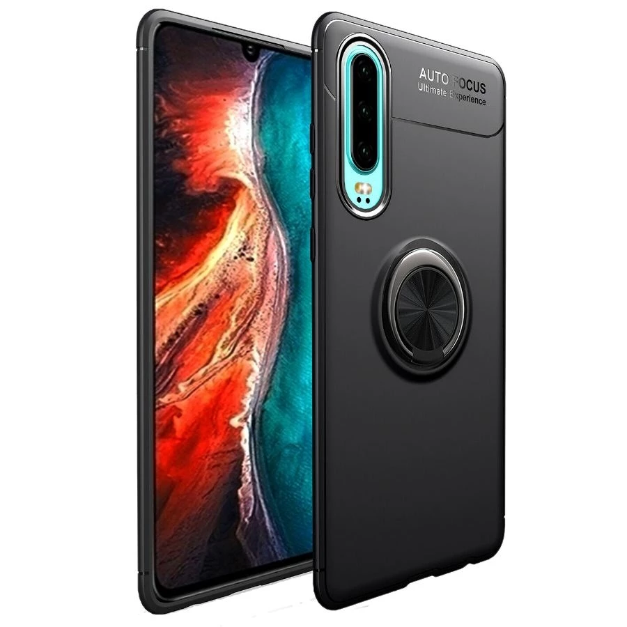 Teleplus Huawei P30 Ravel Yüzüklü Silikon Kılıf Nano Ekran Koruyucu Siyah