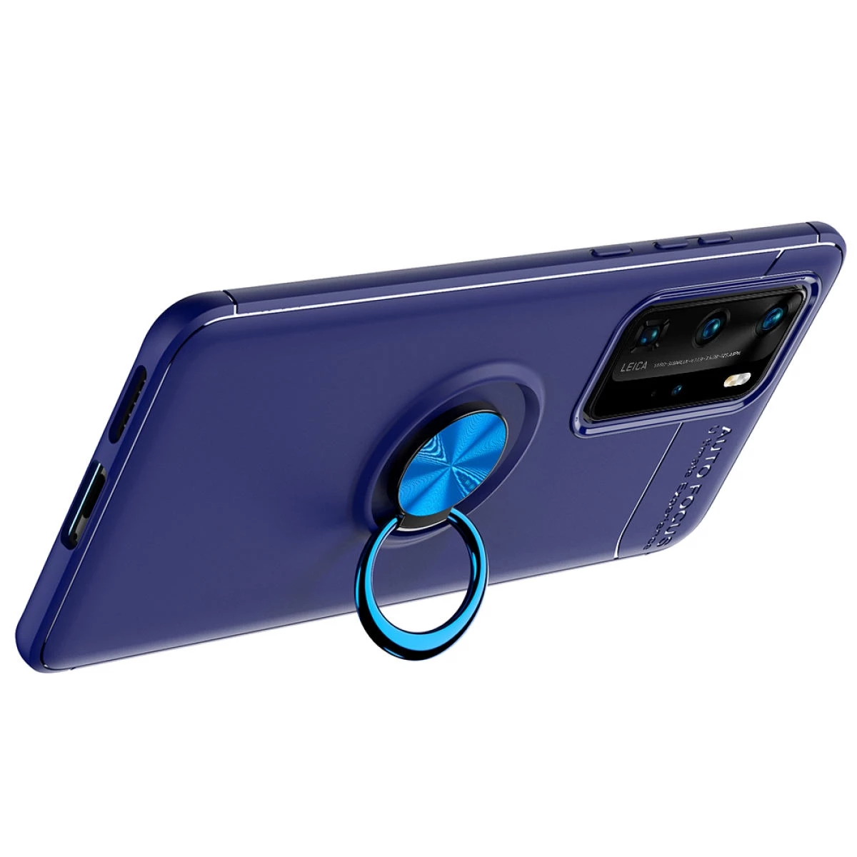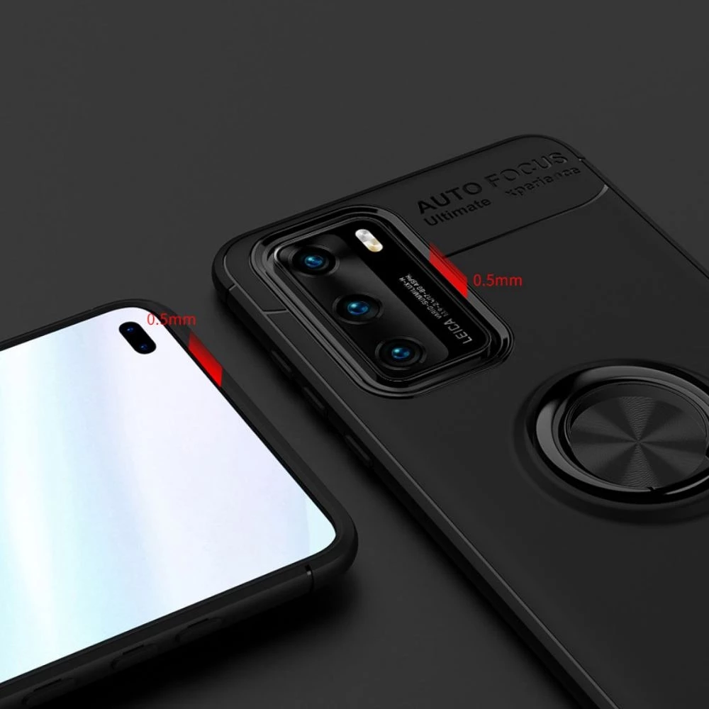 Teleplus Huawei P40 Kılıf Ravel Yüzüklü Standlı Silikon Tam Kapatan Ekran Koruyucu Siyah