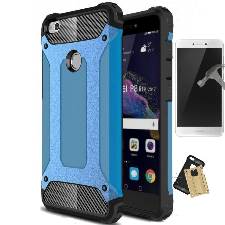 Needion - Teleplus Huawei P9 Lite 2017 Çift Katmanlı Tank Kapak Kılıf   Cam Ekran Koruyucu Mavi